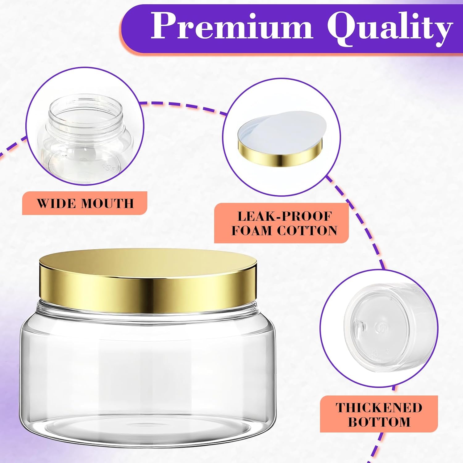 • 【GOOD MATERIAL】- Our 8 ounce cosmetic jars are made of high grade transparent plastic, resistant to breaking. These plastic cosmetic containers with lids have complete sealed design, you do not need to worry about leakage, especially when you carry them in your bags.