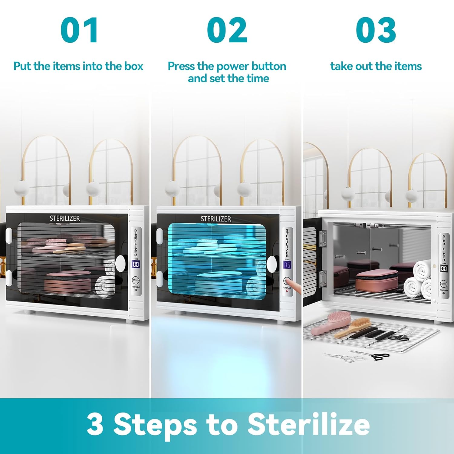 Professional U&V Nail Tool Cabinet, 12L U&V Sanitizer Box U&V Light Nail Tool Cleaning Machine with Time Setting, U&V Light Equipment for Esthetician,Manicurist,Spa,Tattoo,Barber&Salon