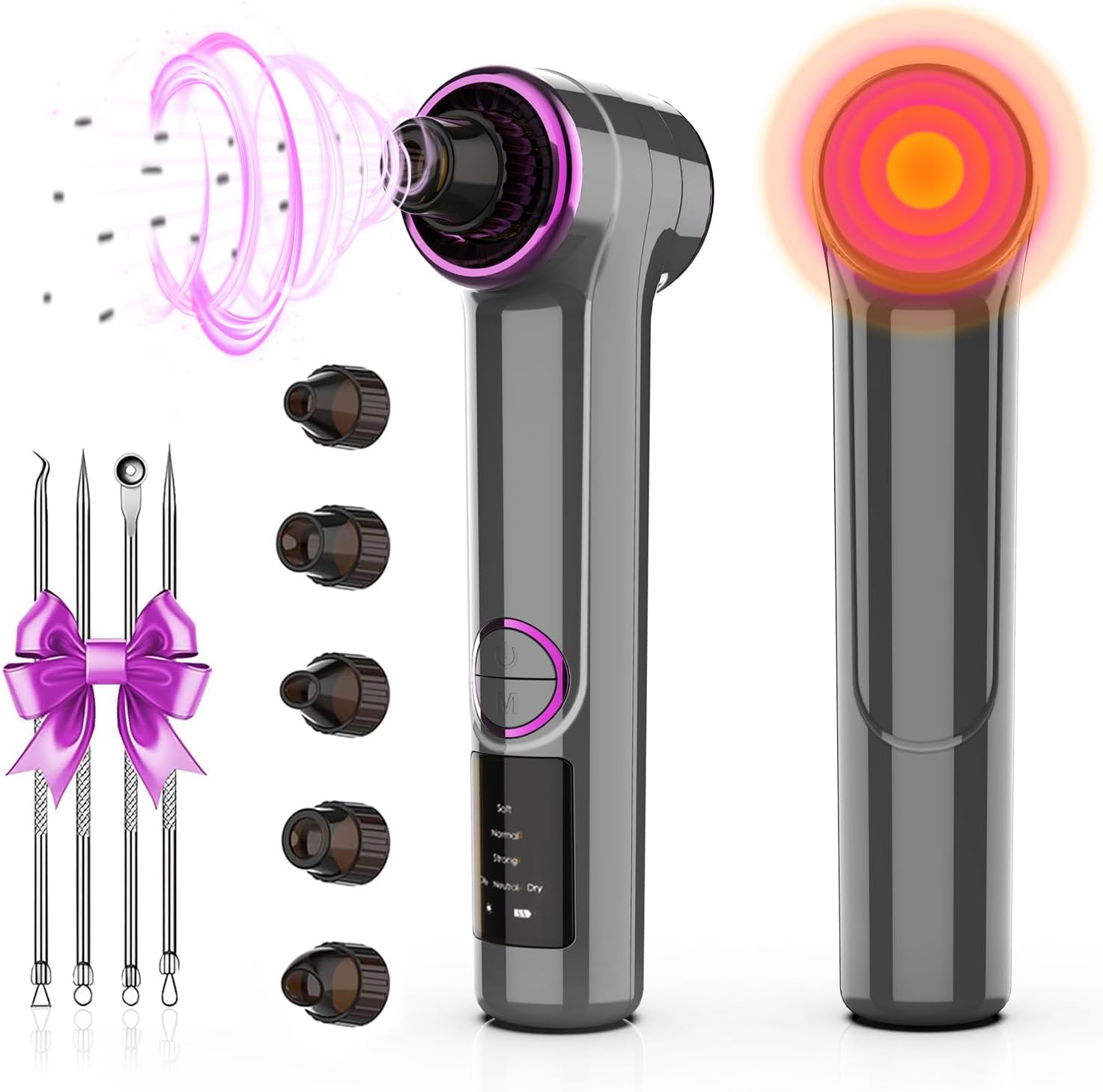 Blackhead Vacuum Removers with Heating, Pore Vacuum Blackhead Suction Remover, 3 Adjustable Suction Levels 9 Modes, Comedone Extractor Kit with 5 Suction Heads for Nose & Face Deep Pore Cleaning