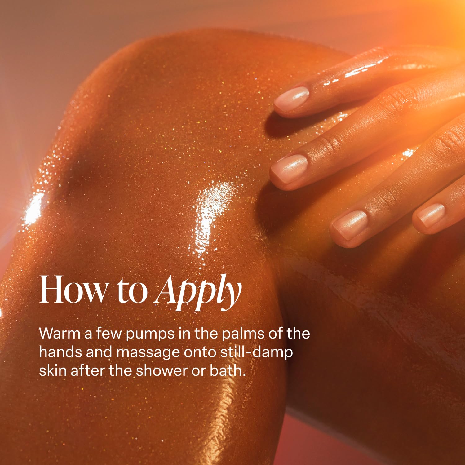 • EASY-ABSORB FORMULA: Our shimmering glow oil penetrates the skin without leaving a greasy feel, while light-reflecting golden pearl pigments give you a healthy sun-kissed glow. Simply warm a few pumps in the palms of the hands and massage onto still-damp skin.