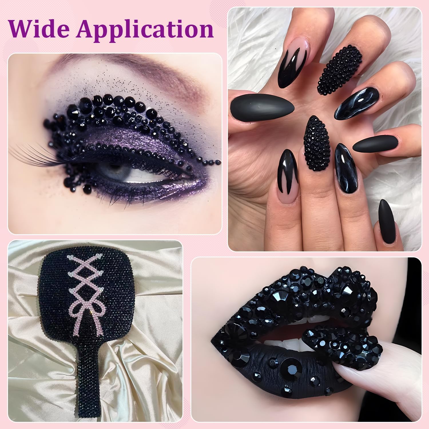 30000Pcs Black Rhinestones for Bedazzling with B7000 Jewelry Glue, Bedazzler Kit Flatback Gems, Resin Rhinestones for Crafting Crafts Clothing Shoes Fabric Nail Art Assorted Size 2/3/4/5/6mm