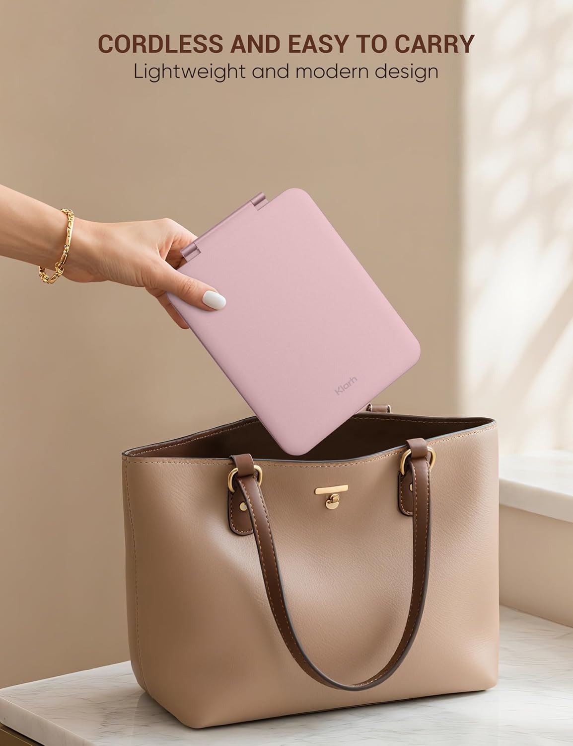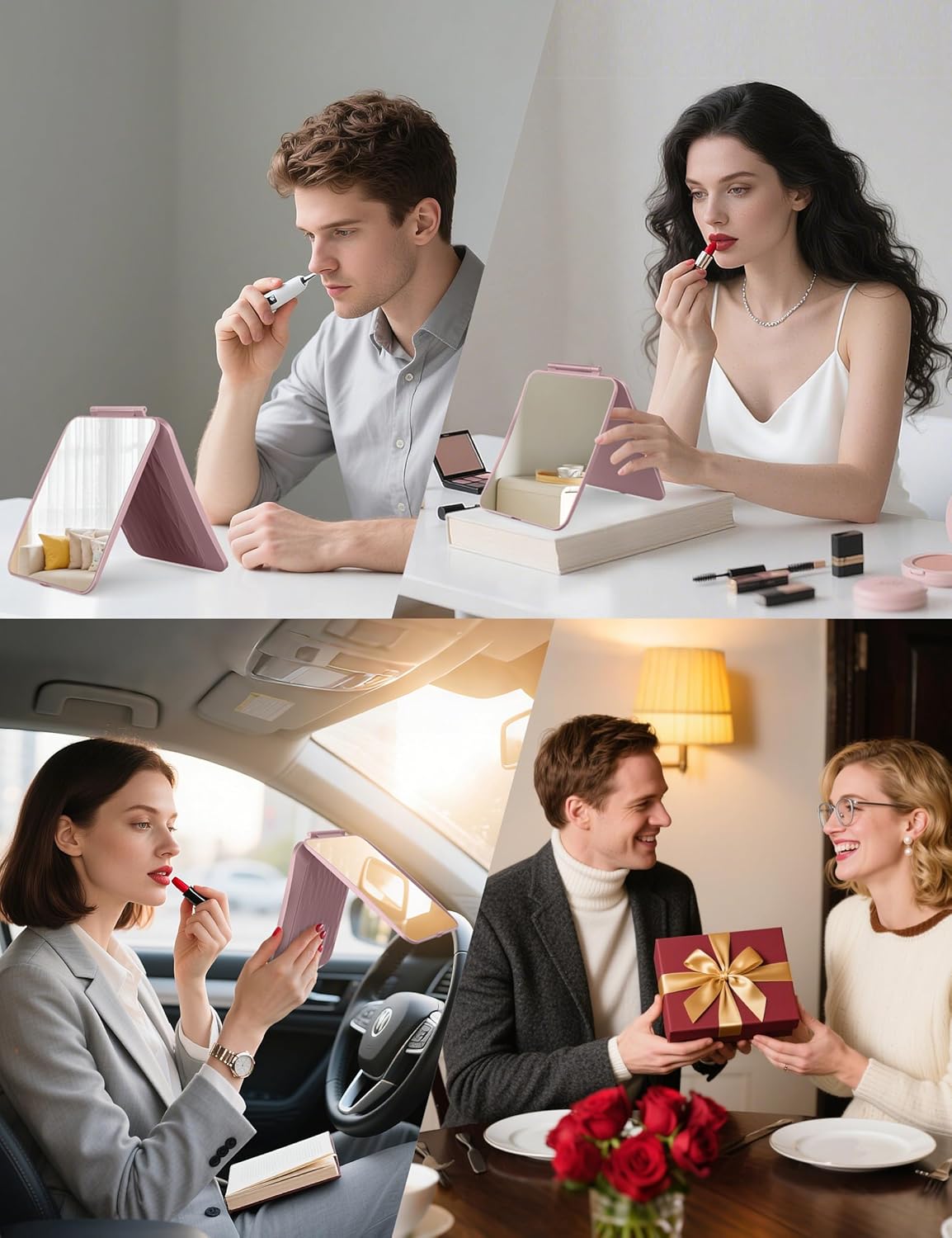 • 【Portable Travel Mirror & Lightweight and Portable】 The mirror itself weighs only 1.0 lbs, size: 8.5*6.4 inches, can be easily put into a bag or stored in a suitcase. It can be used for makeup application and touch-ups, suitable for commuting and 2-3 days business trips.