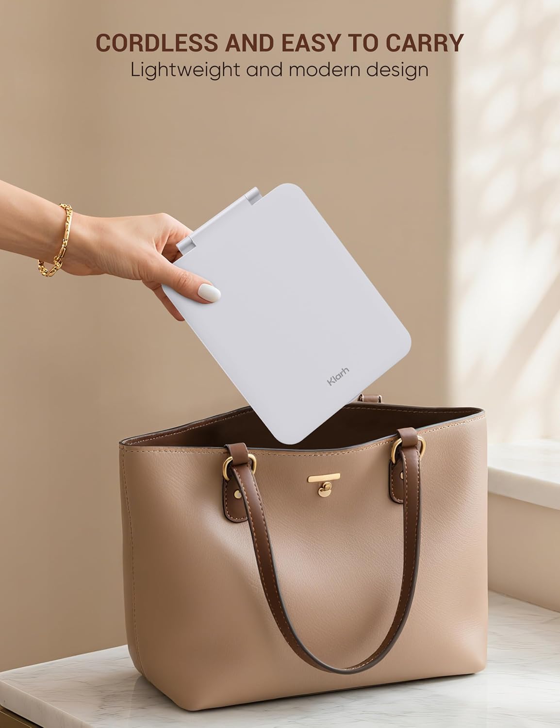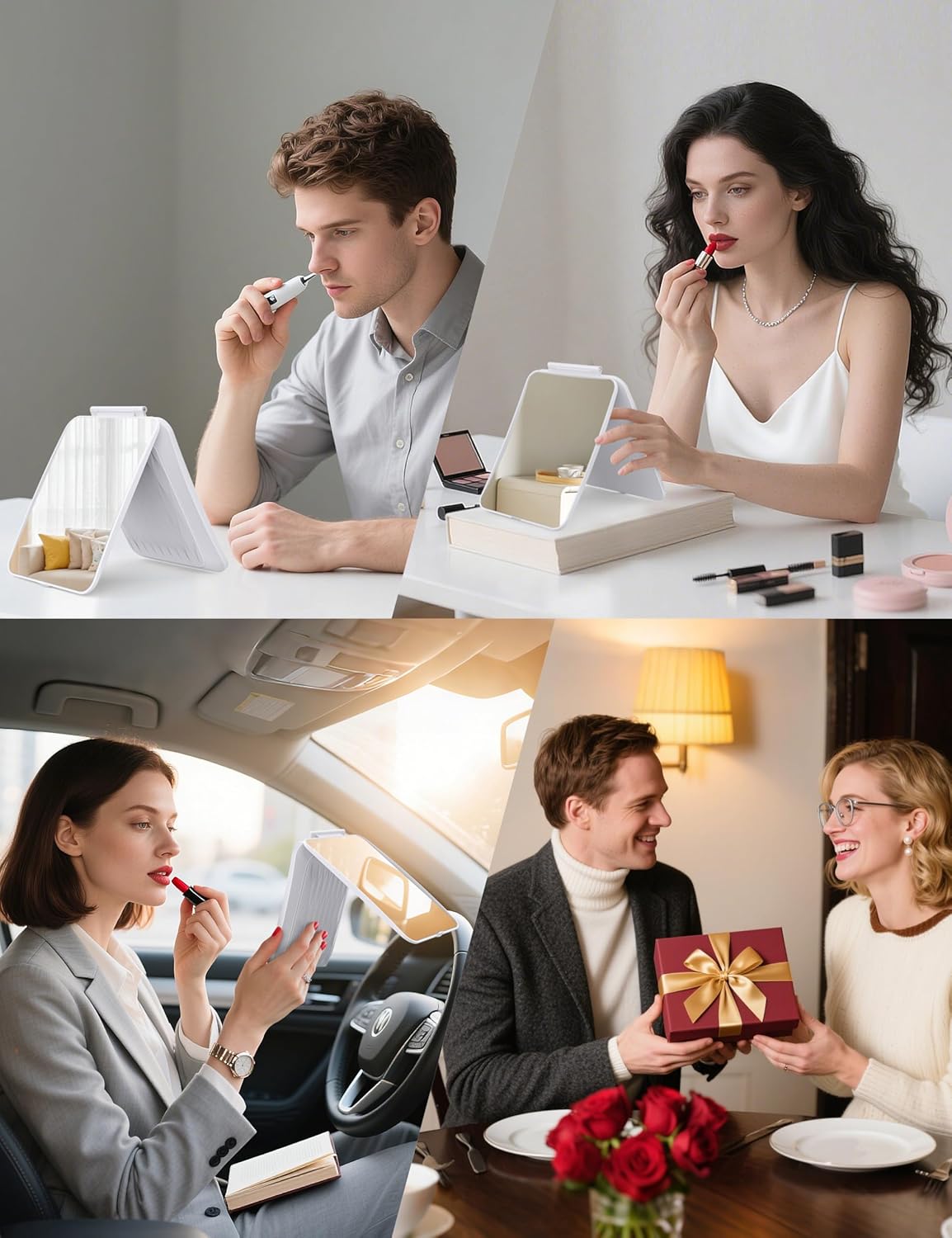 • 【Portable Travel Mirror & Lightweight and Portable】 The mirror itself weighs only 1.0 lbs, size: 8.5*6.4 inches, can be easily put into a bag or stored in a suitcase. It can be used for makeup application and touch-ups, suitable for commuting and 2-3 days business trips.