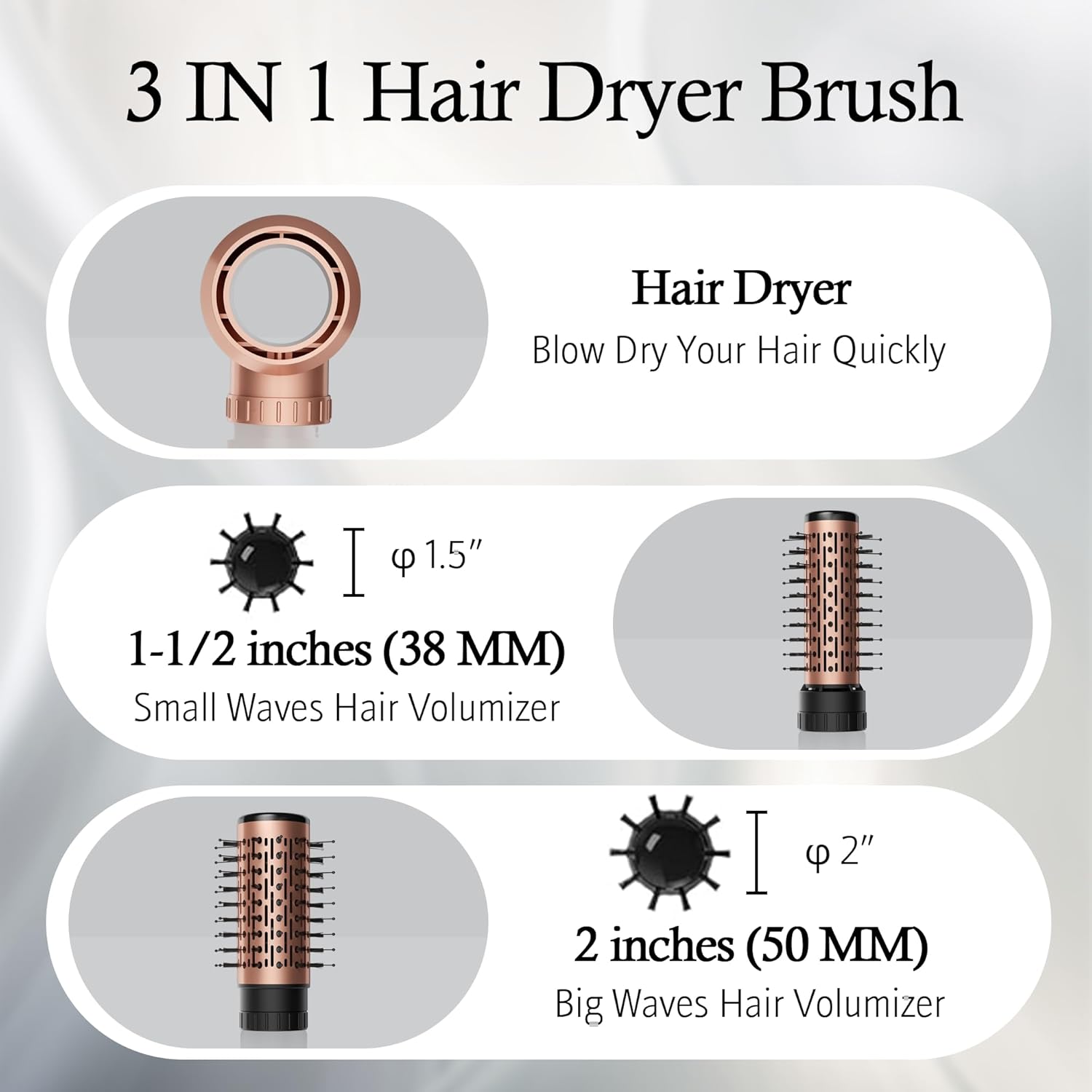 • Diverse Styling Options: Comes with three interchangeable attachments that rotating hair brush caters to various hair lengths and types