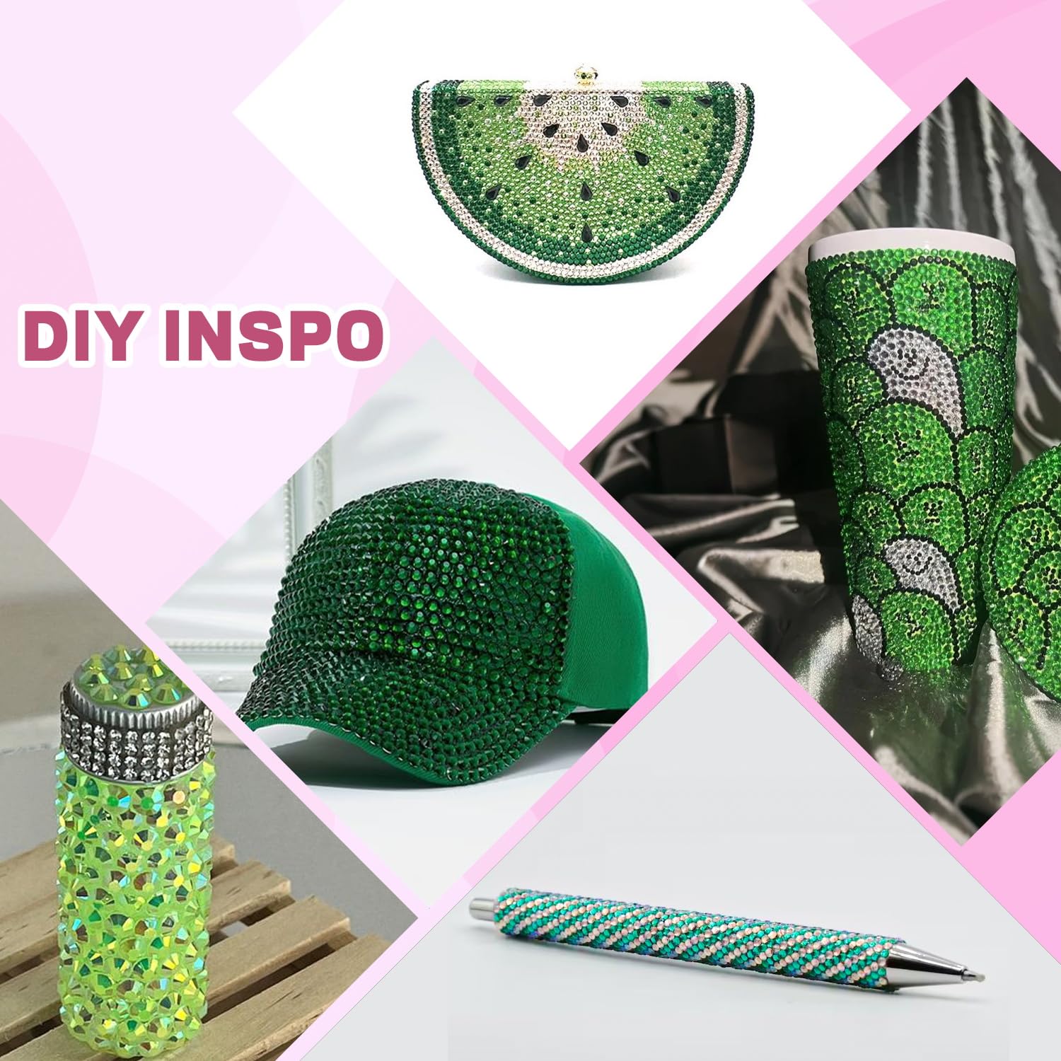 20000Pcs Green Rhinestones for Bedazzling with 1Pcs B7000 Jewelry Glue, Resin Rhinestones for Crafting Crafts DIY, Bedazzler Kit Gems for Clothing Shoes Tumblers Nail Art Assorted Size 3/4/5/6mm