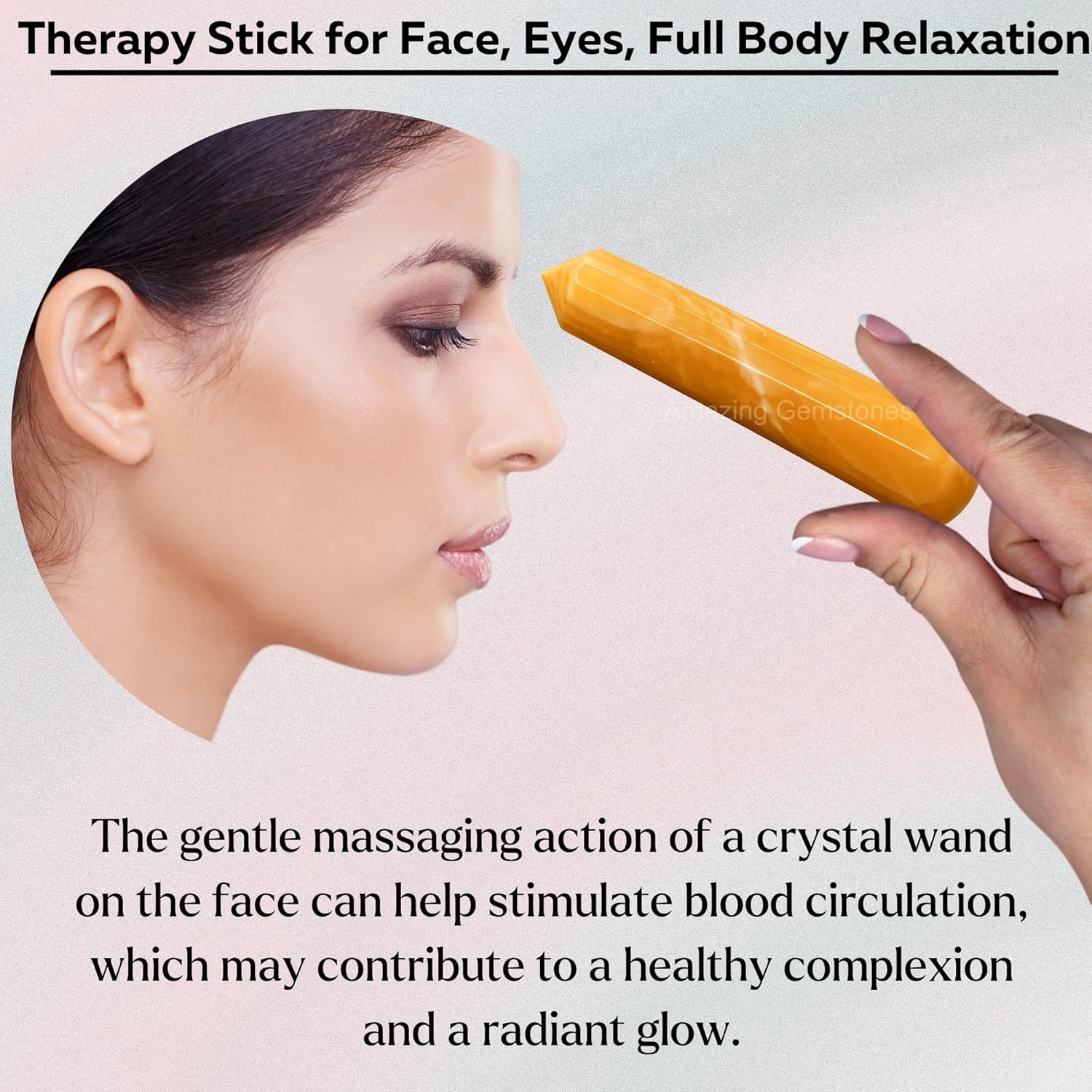 • Natural Healing Crystal Wand - This yellow calcite massage stick is infused with the natural energy of crystals to enhance your massage experience and are hand crafted, quality checked, earthly mined, organic and authentic.