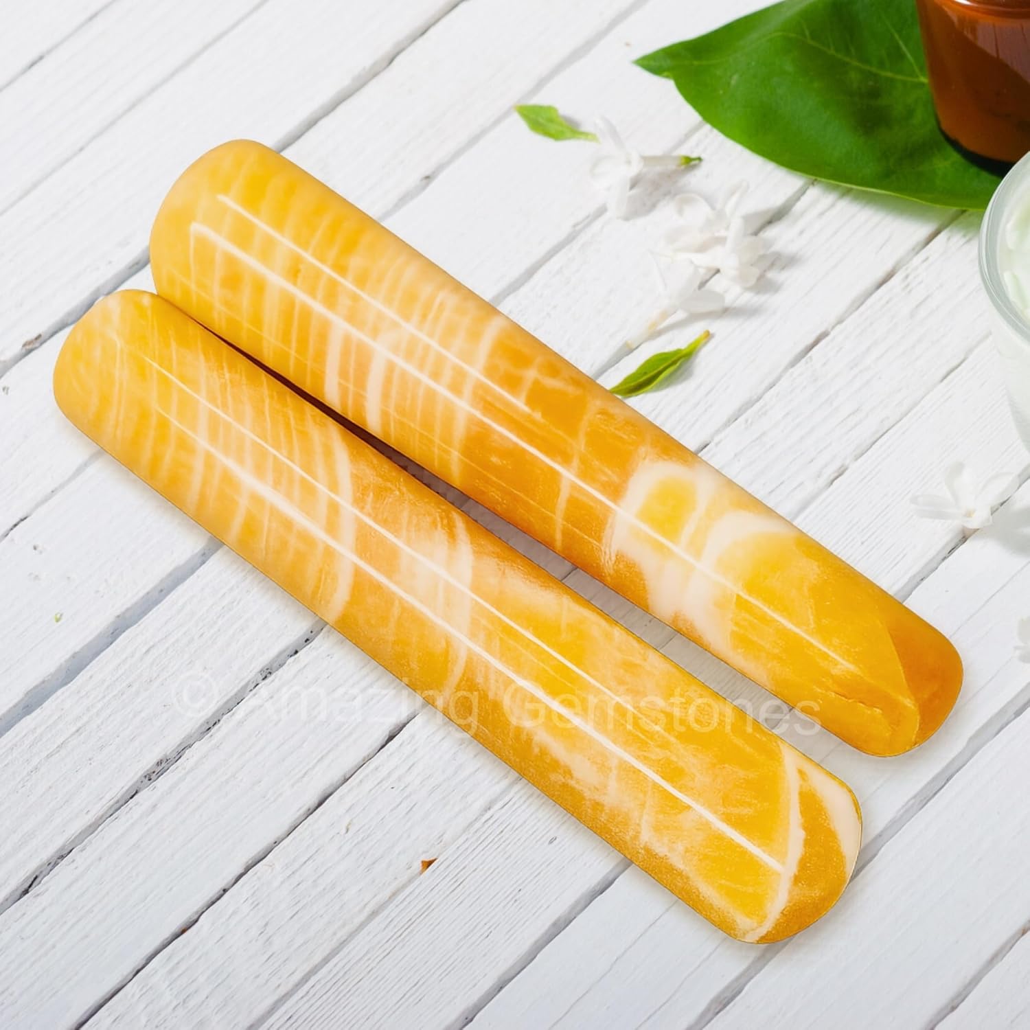 Yellow Calcite Crystal Wand Massage Stick - Pelvic Wand Gua Sha for Adults - Crystals and Healing Stones Massage Wands for Adults Gifts (Smooth)