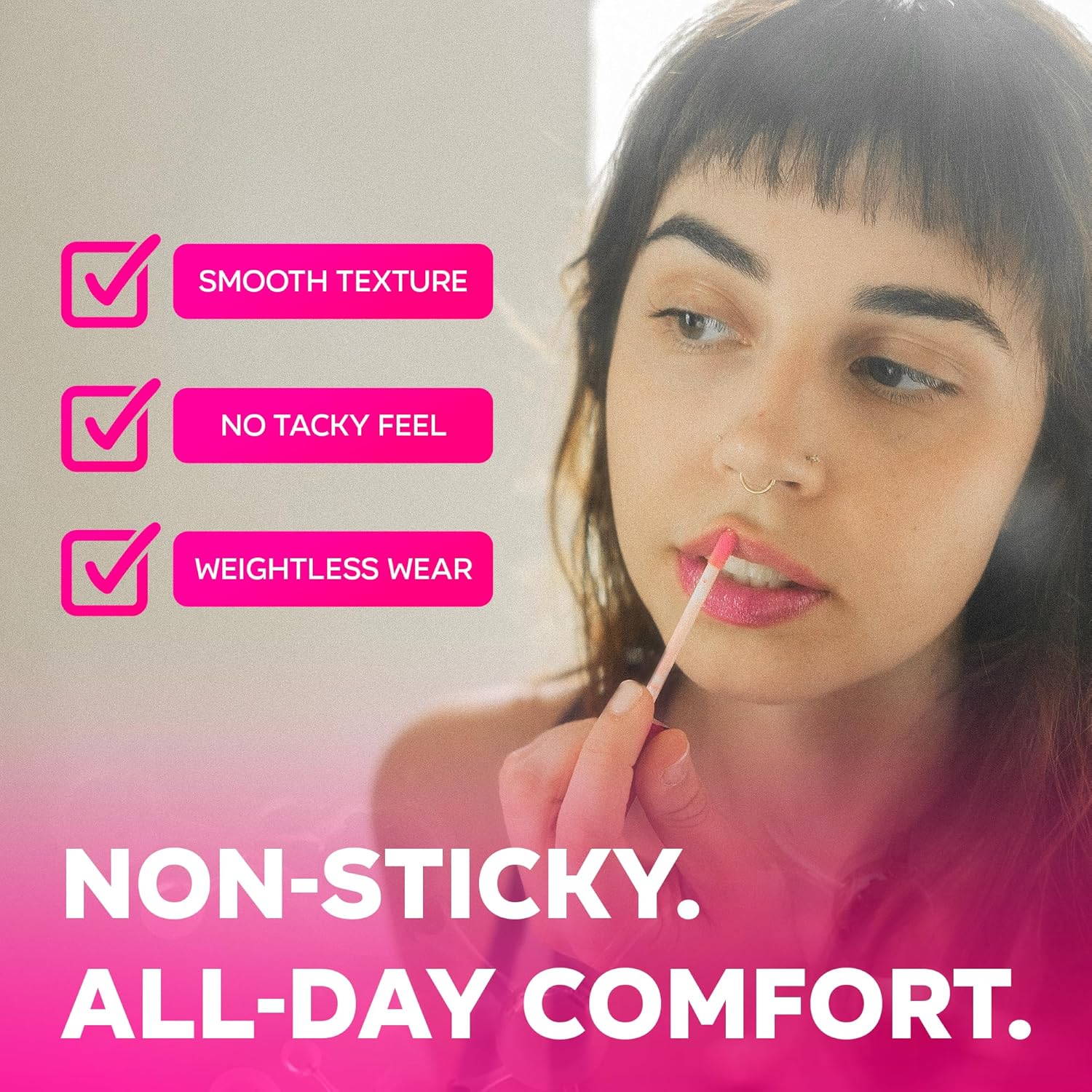 • Weightless wear all day: This non sticky lip gloss glides on smooth with no tacky residue—perfect for lips gloss lovers who want comfort and shine without the mess of sticky lip gloss.
