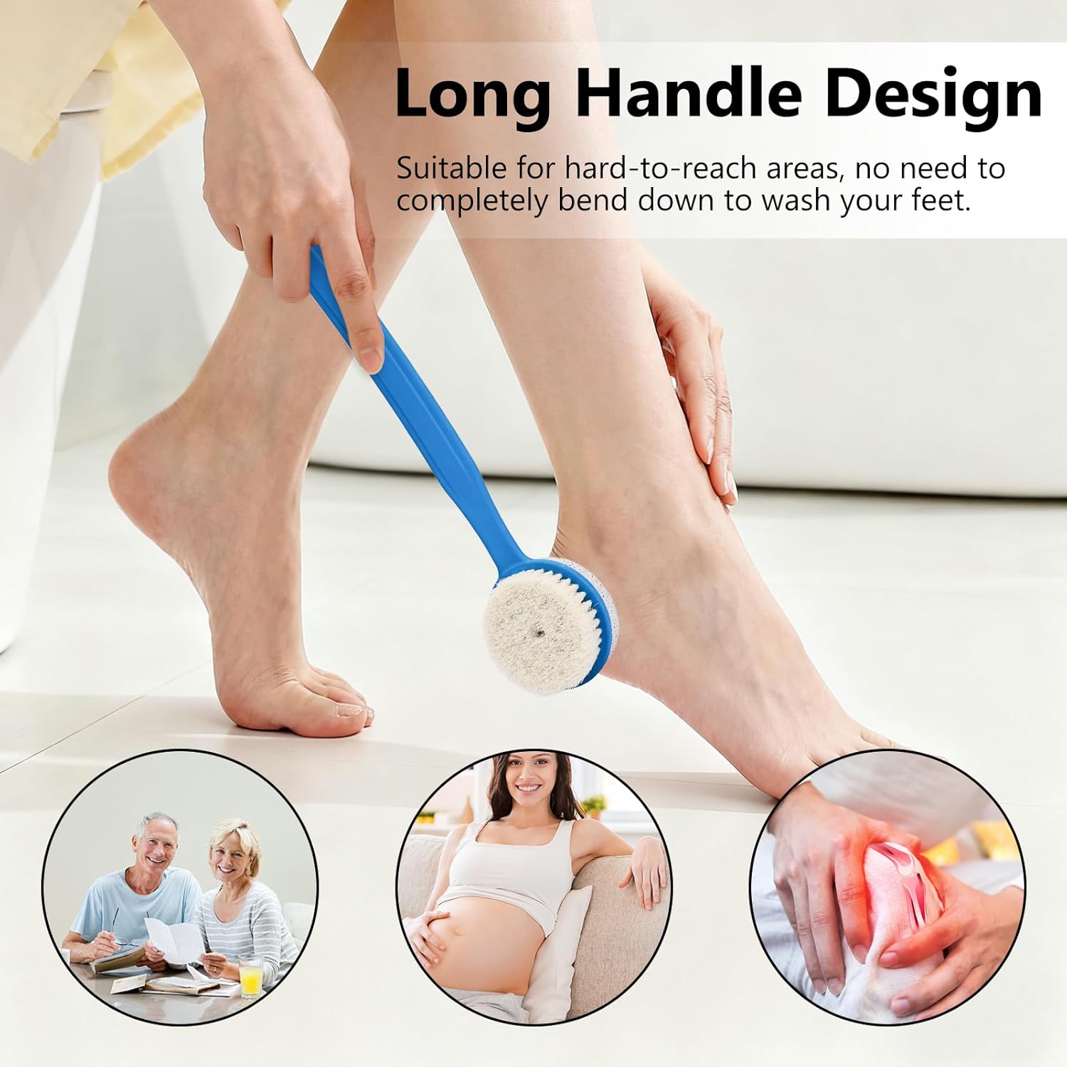 Pumice Stone for Feet with Long Handle (Double-Faced Curved Handle,Blue, Count, 1)