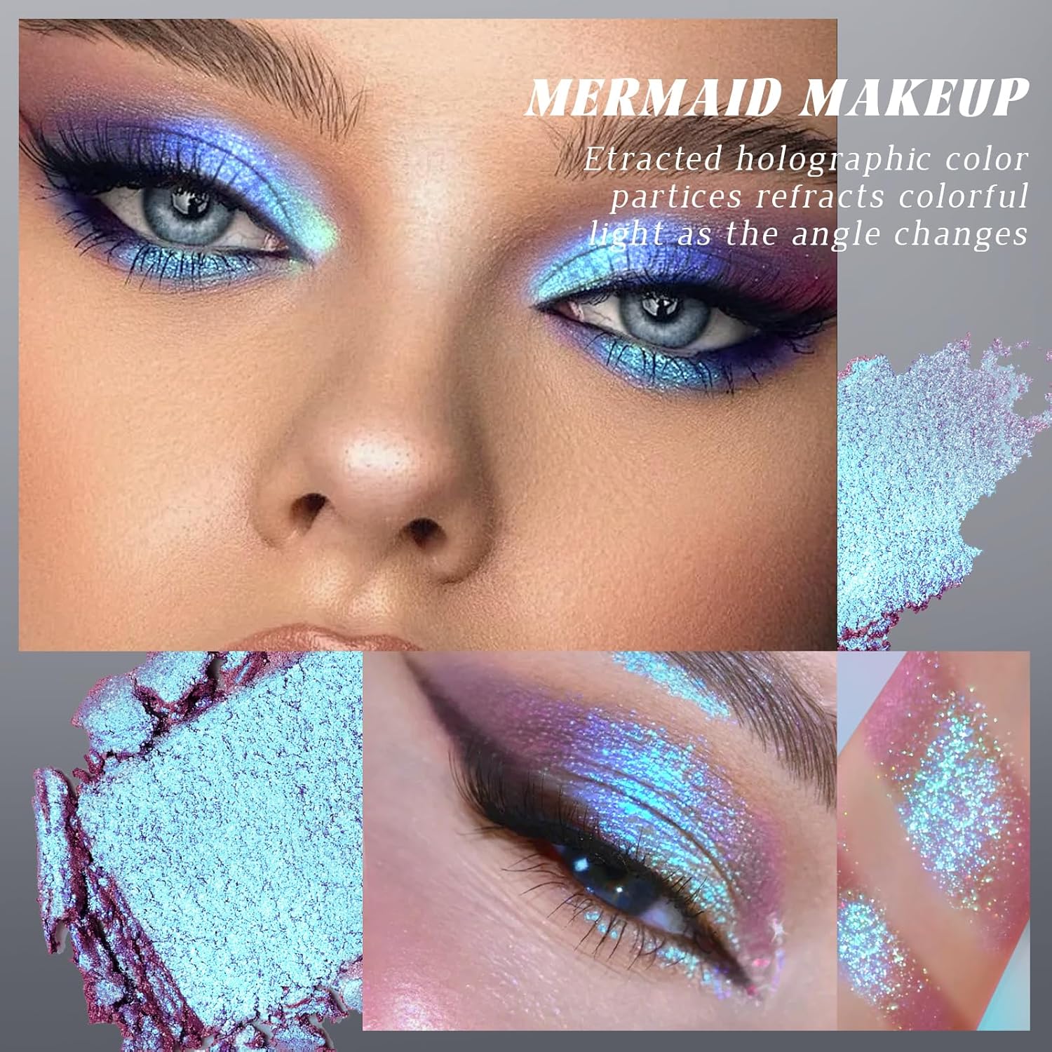 • Chameleon Mermaid Eyeshadow: Intense Color Shifting, Different light and angle will present different colors, holographic glitter eyeshadow will bring you special eye makeup