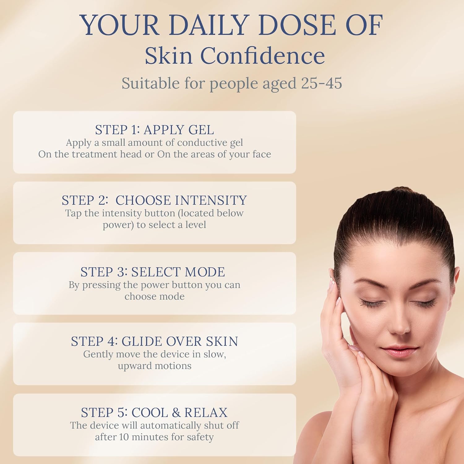 • Crafted to elevate your daily self-care ritual, this tool features smooth ergonomic contours, intuitive controls, and wide compatibility with skincare gels and serums. It’s an ideal gift for yourself or someone special, offering brighter, smoother, more energized skin with every use.