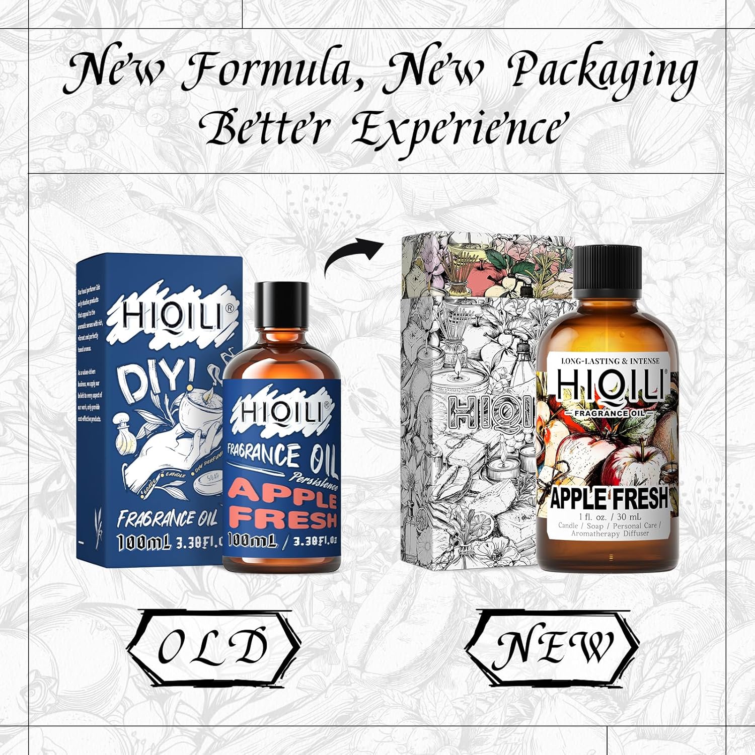 HIQILI Apple Fresh Fragrance Oil for Home Diffuser, Candles, Soaps, Bath Bombs & Perfume Making, Long-Lasting Fruity Scent - 1 Fl Oz