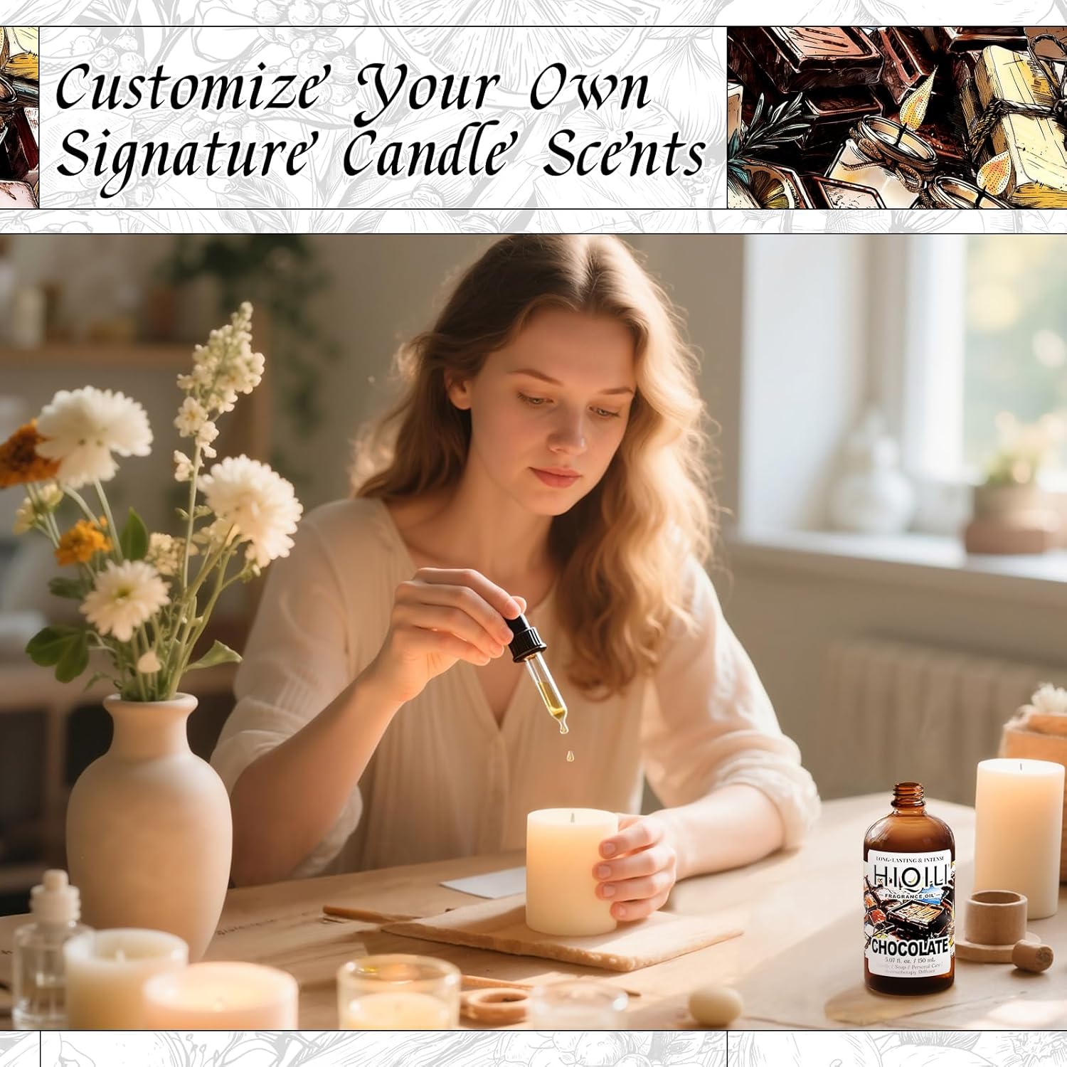 HIQILI Chocolate Fragrance Oil for DIY Candle, Soap & Bath Salts Making, Long Lasting Scents for Home Essential Oil Diffuser - 5.07 Fl Oz