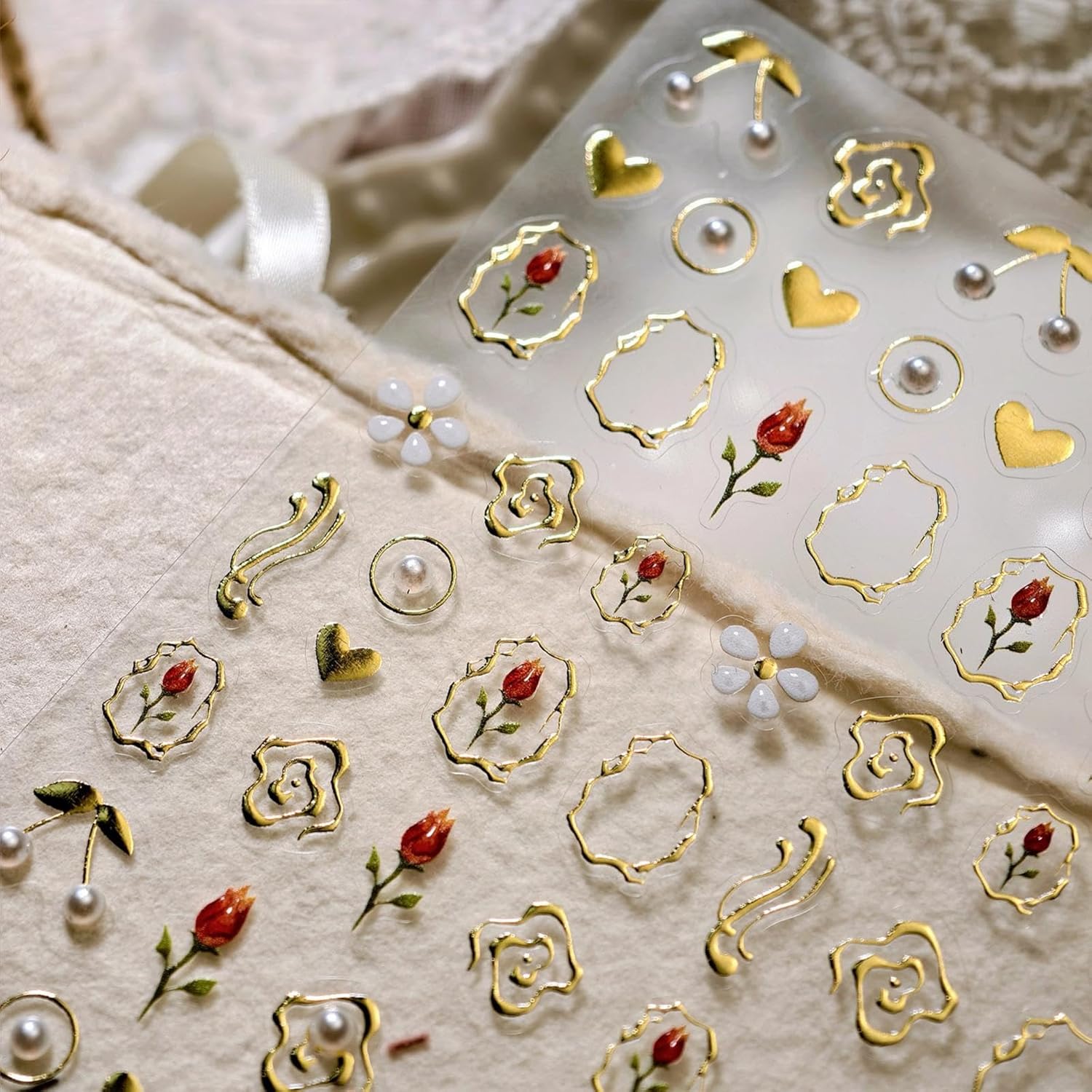 Gold Nail Stickers Flower Nail Decals for Nails Art Tulip Nail Art Stickers with Design Heart Nails Art Decals Self Adhesive Sticker for Women Girls Kid Manicure Charms Supply Accessories