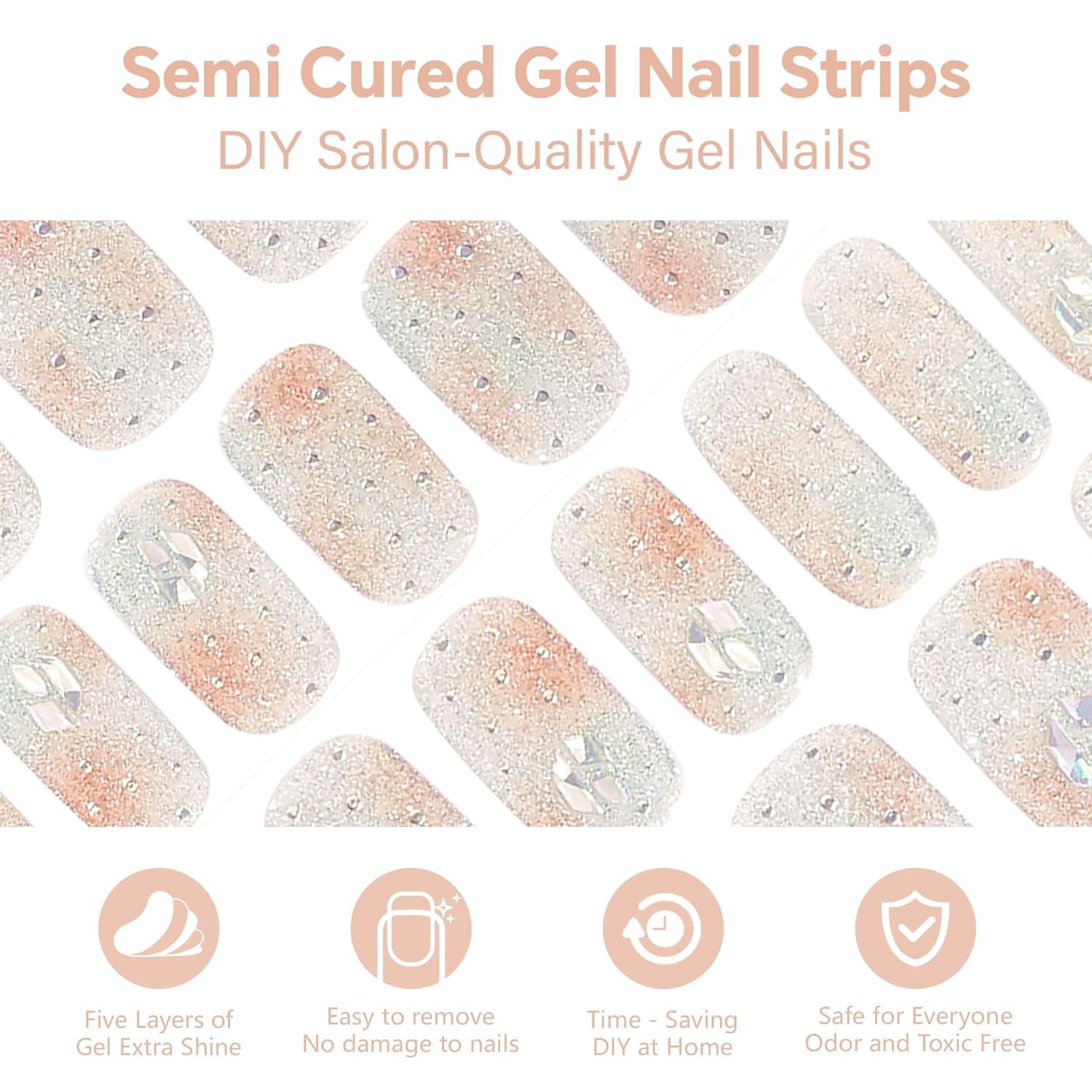 Semi Cured Gel Nail Strips-Salon Quality Semi-Cured Gel Press On Nails Stickers Quick DIY Nail Art Manicure Kits for Women at Home Works with Any UV/LED Lamps(Gilded Constellation)
