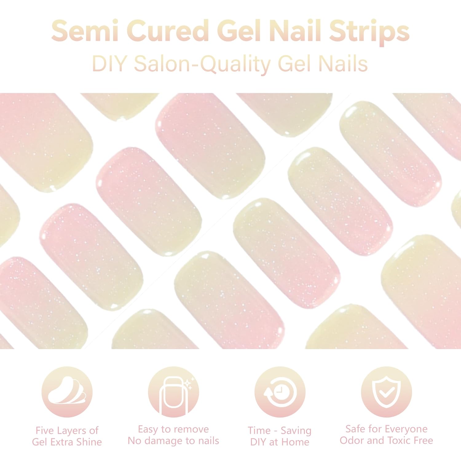 Semi Cured Gel Nail Strips-Fall winter nail stickers Glossy finish cozy season colors sweater weather designs for holiday parties,Works with Any UV/LED Lamps(Champagne Stardust Shift)