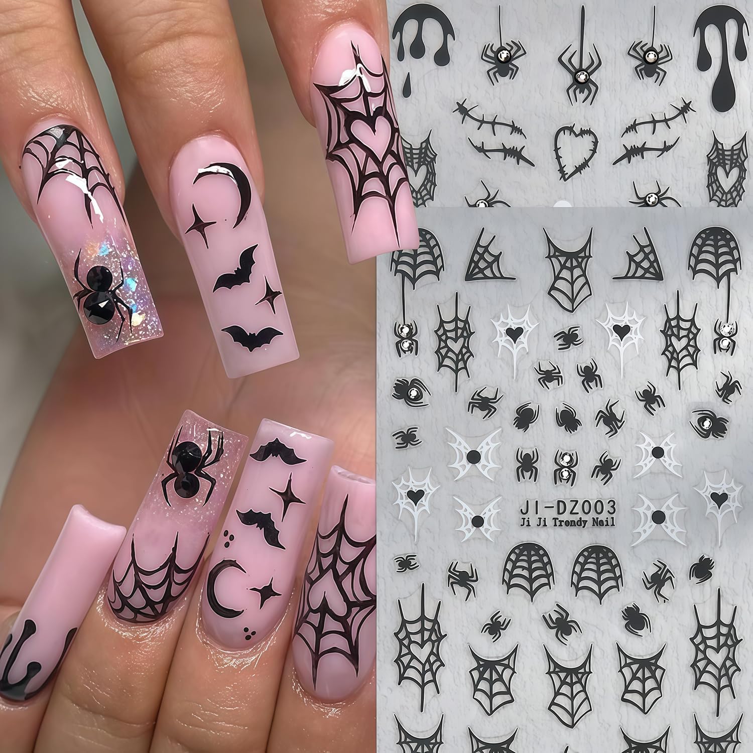 • Quantity: You will get 4 sheets of ghost nail art stickers, including ghost, spider web, spider web pattern designs, not easy to fall off or fade, can easily create a variety of themed nail art, meet the needs of reusable