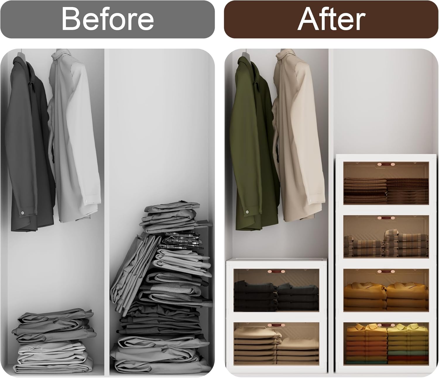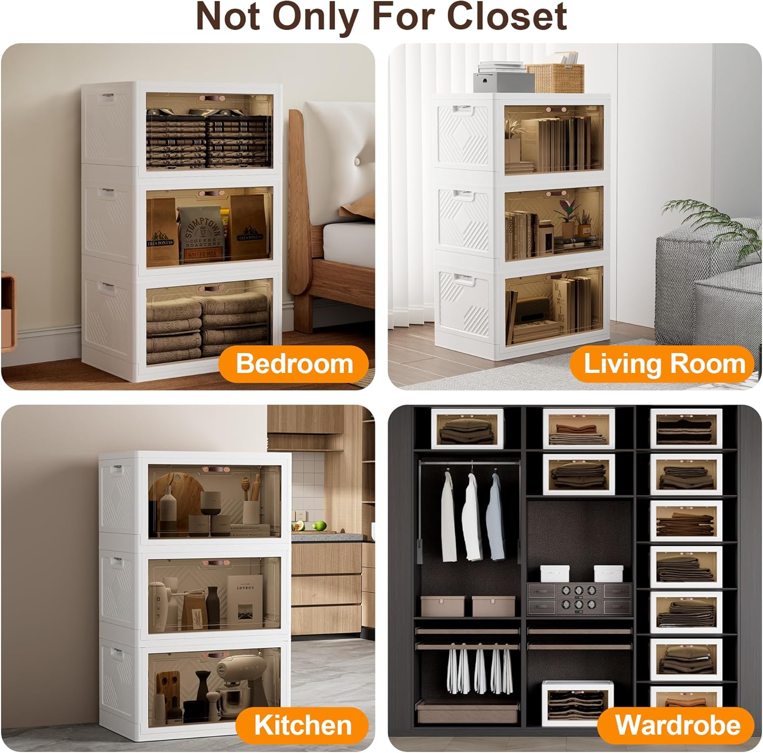 • [Foldable & Translucent] The foldable design provides more convenience. When you're not using these storage bins, you can fold them up and store them, saving more space. The translucent design of the storage box makes it easy to identify the contents of the storage box without opening it