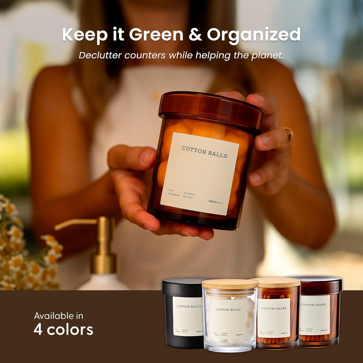 • Save Space on Your Countertop: You can store more in less space with jars that are compact yet roomy enough for daily essentials with our cotton ball and qtip holder set