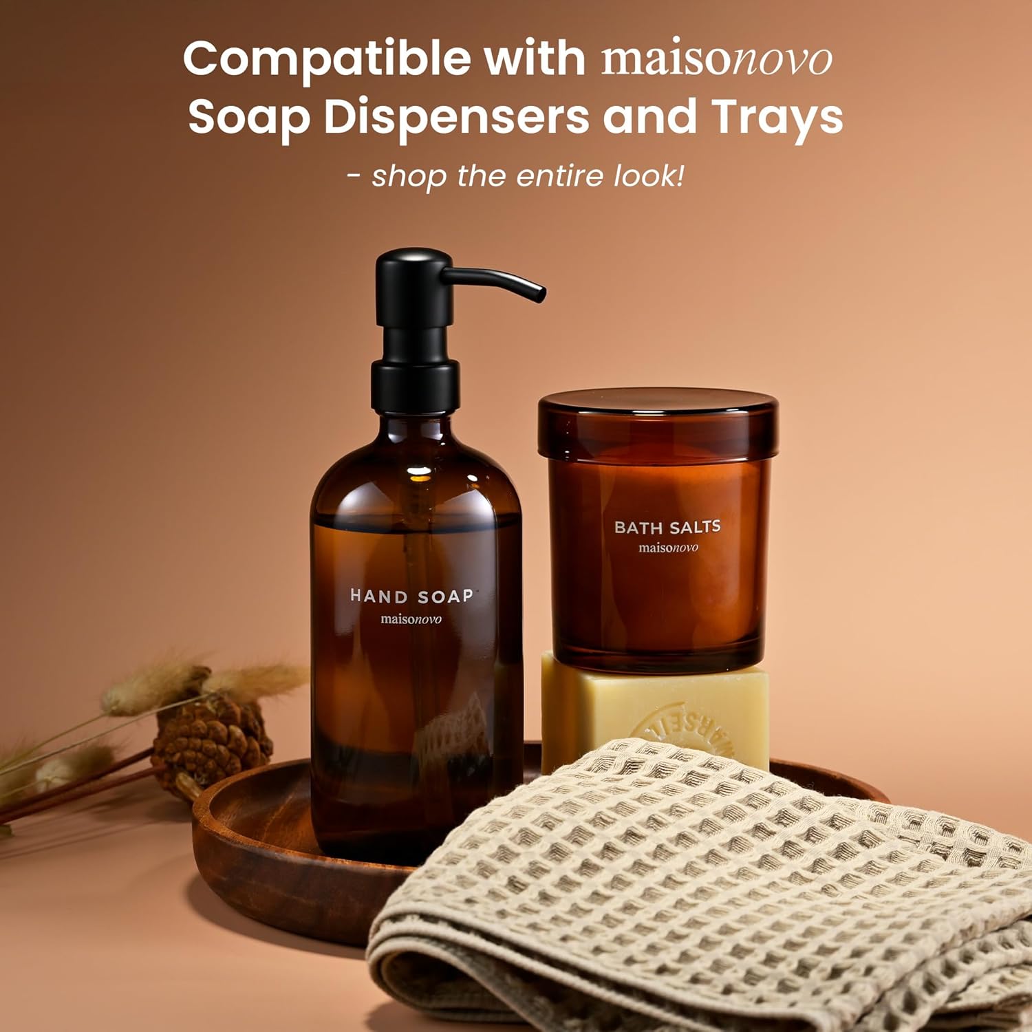 MaisoNovo Qtip Holder Bathroom Set – Airtight Glass Qtip Holder with Lid to Store Q Tips, Cotton Rounds, Cotton Balls, Floss Picks, Hair Ties with free labels pack - 2 Amber Jars with Glass Lids