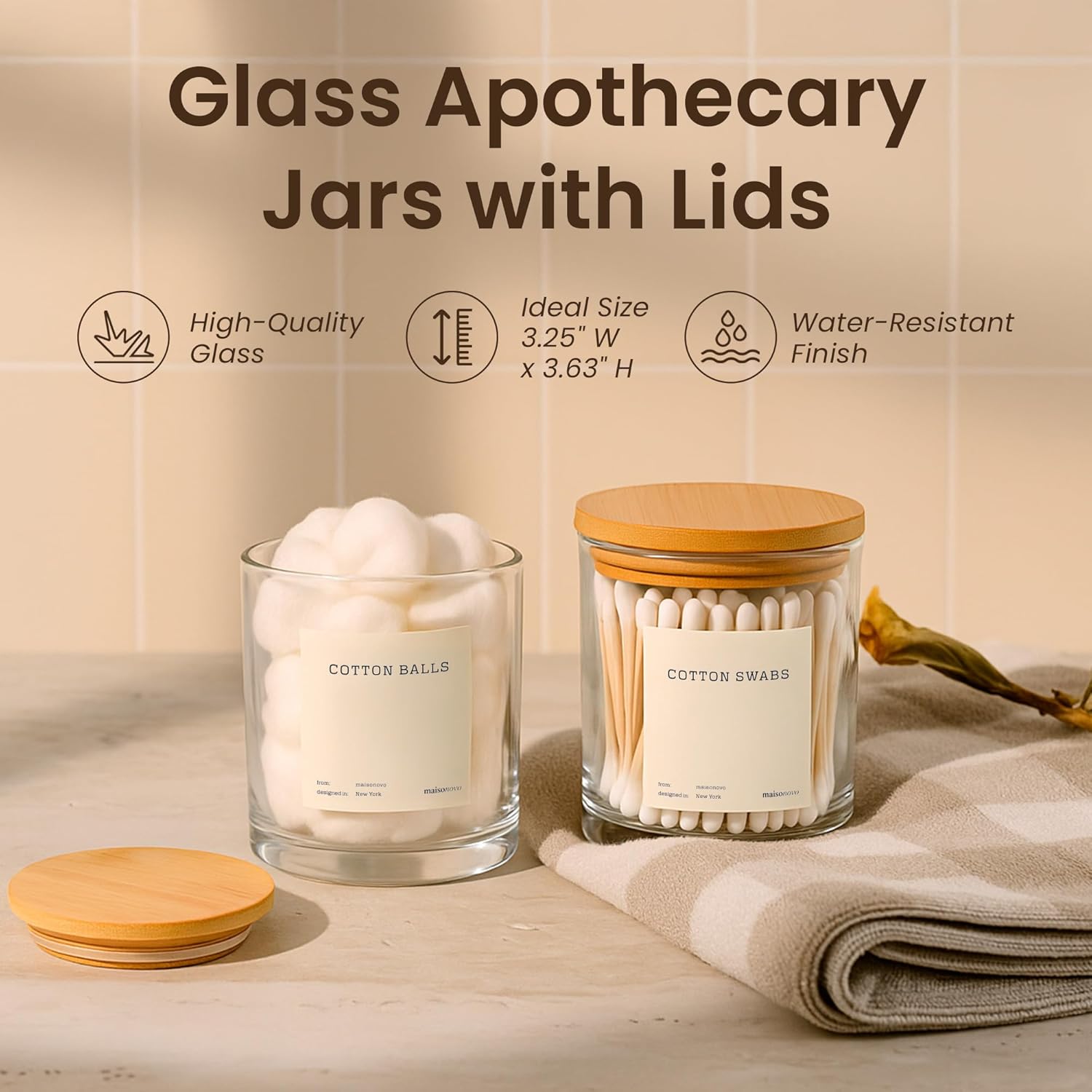 • Elegant Design: Elevate your space with this bathroom qtip holder set blending style with functionality. These classic glass apothecary jars with lids contains and organizes your bathroom essentials and is the perfect accessory for your space.