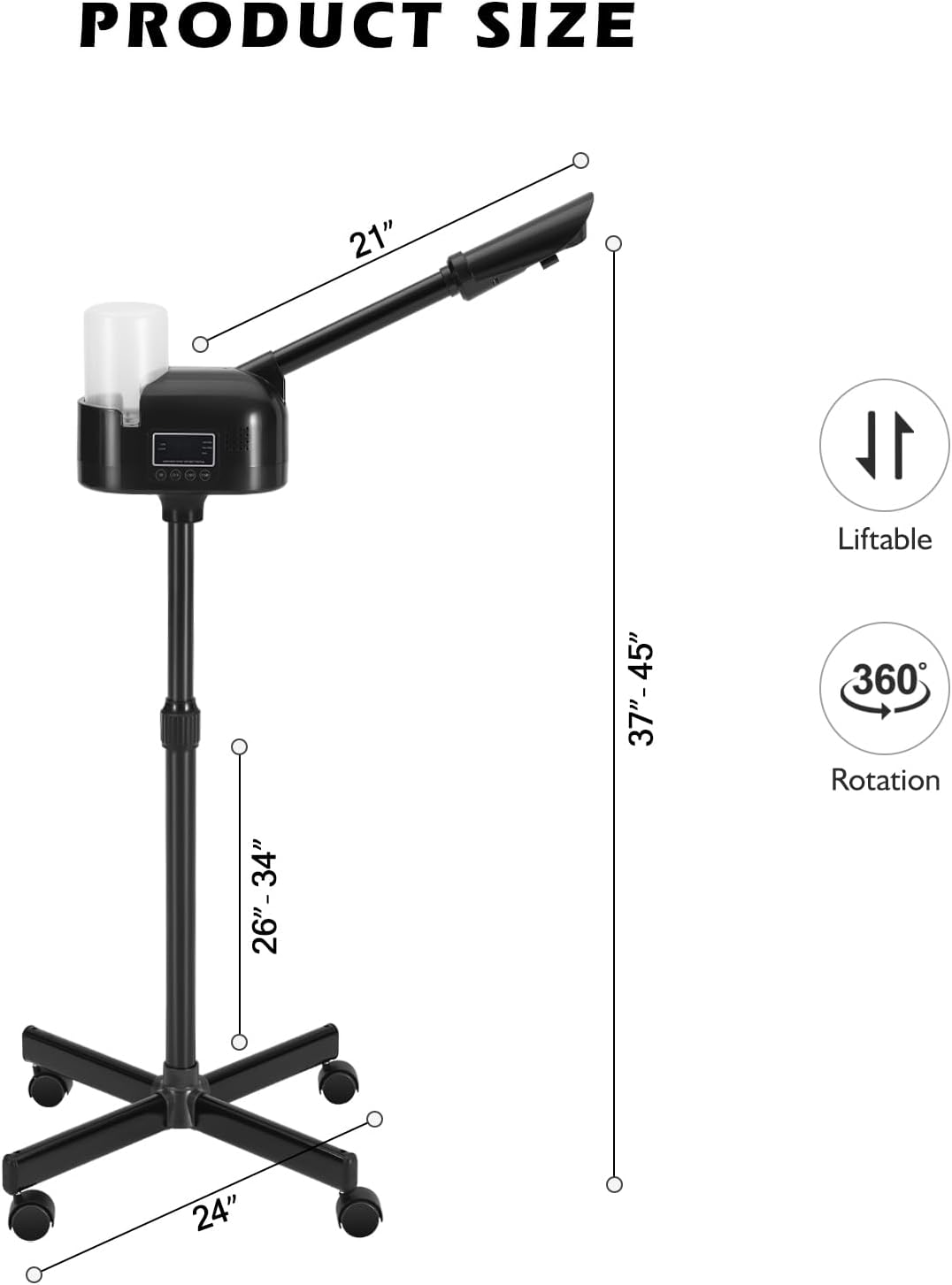 • 【Adjustable Arm & Spray Nozzle】Easily direct steam where you want it. With its swiveling spray arm and adjustable height, it's perfect for both barbershop customers and spa beds