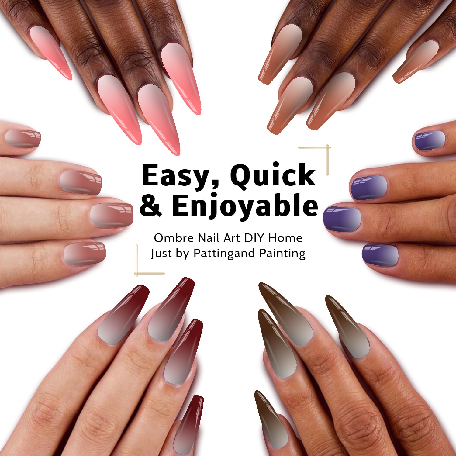 • 【EASY USE:】All steps are the same as normal UV/LED nail gel: 1.Clean and Prep; 2. Base coat and cure. 3. Apply color gel and cure. 4. Top coat and cure. 5. Clean nails and apply oil. Karroy ombre painting nail gel is easy to use: just grabbing a sponge and picking up your desire color, and patting sponge on your nail, you will get wonderful gradient coloring nails!