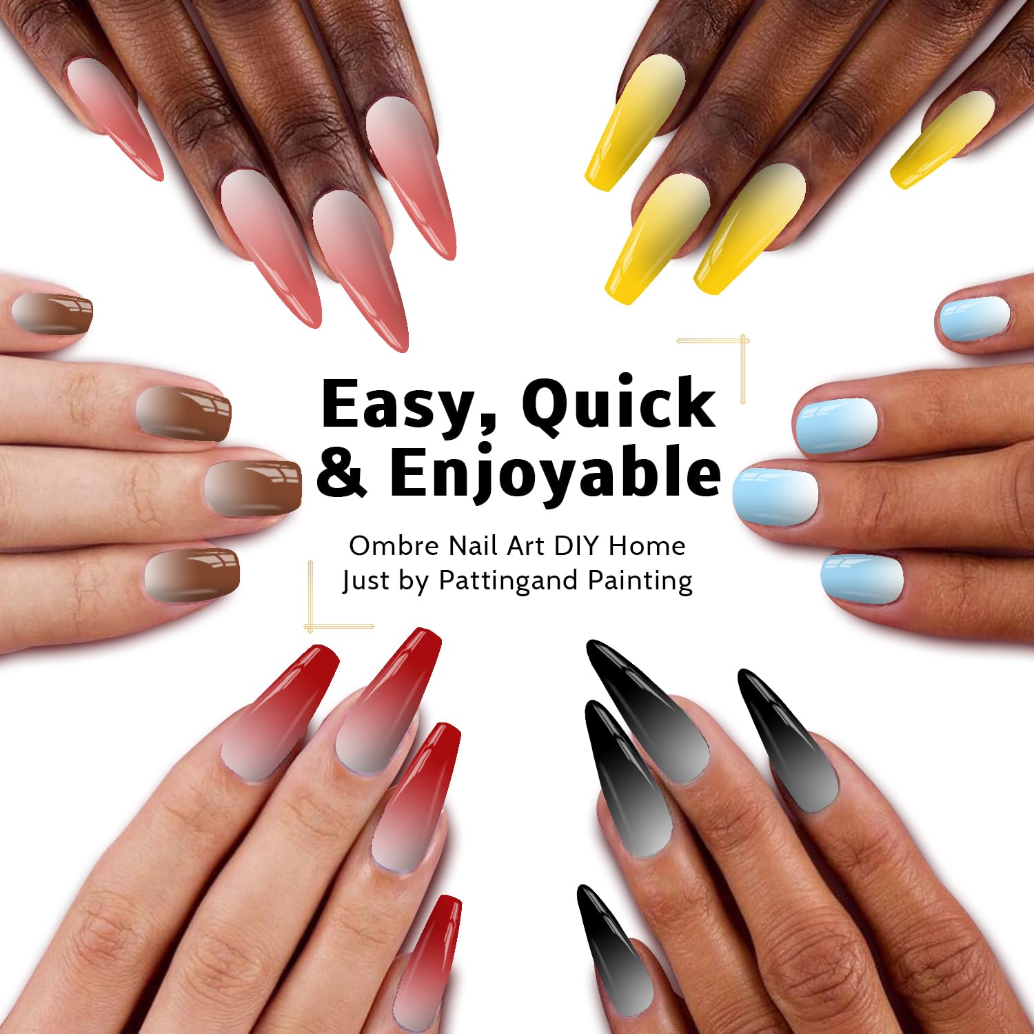 • 【HAVE FUN:】Karroy ombre nail gel will bring you great fun by self-coloring mixing, sponge-patting painting, brushes drawing & dotting, ect. It's easy, colorful, and wonderful! Package list: 9-Color Palette, 6PCS Nail Art Brushes, 1 Grabber, 100PCS Nail Sponges.