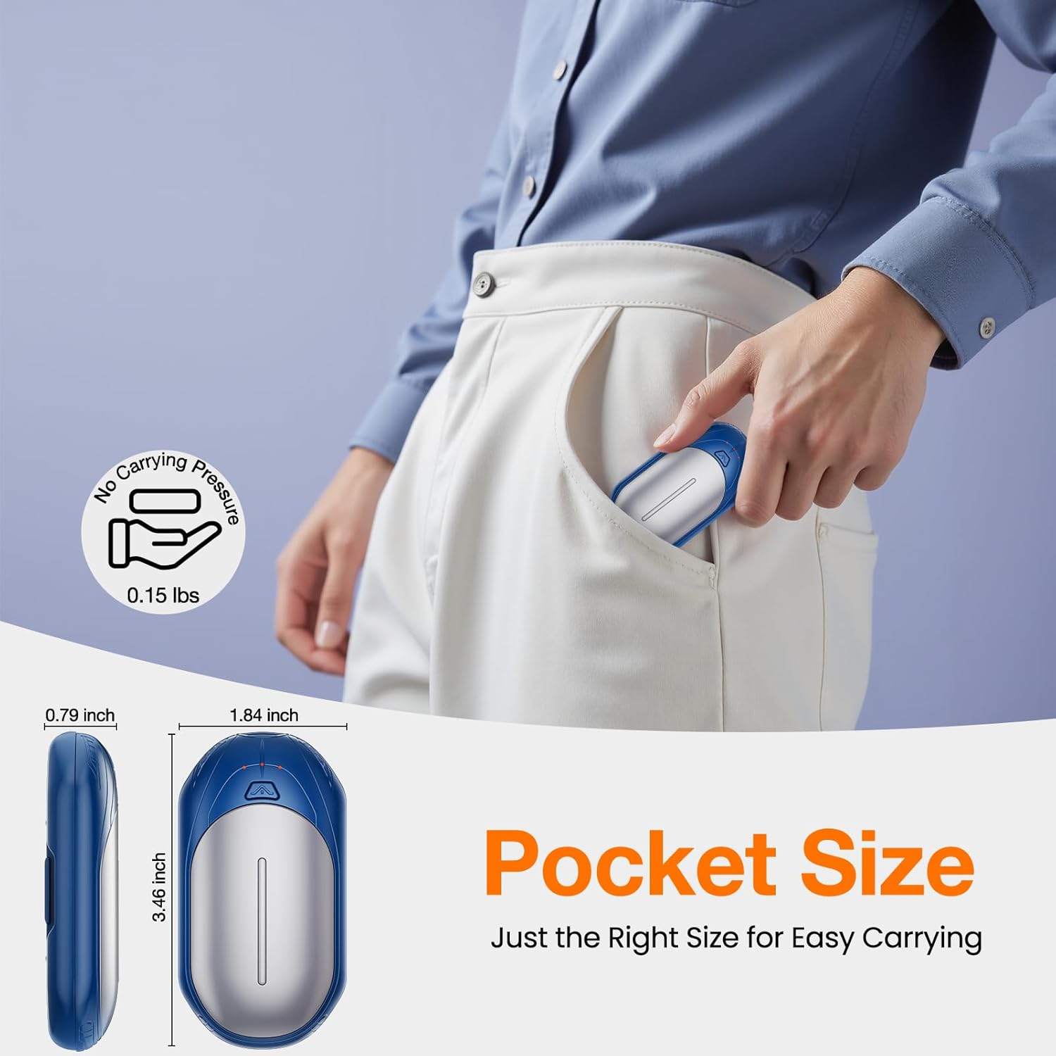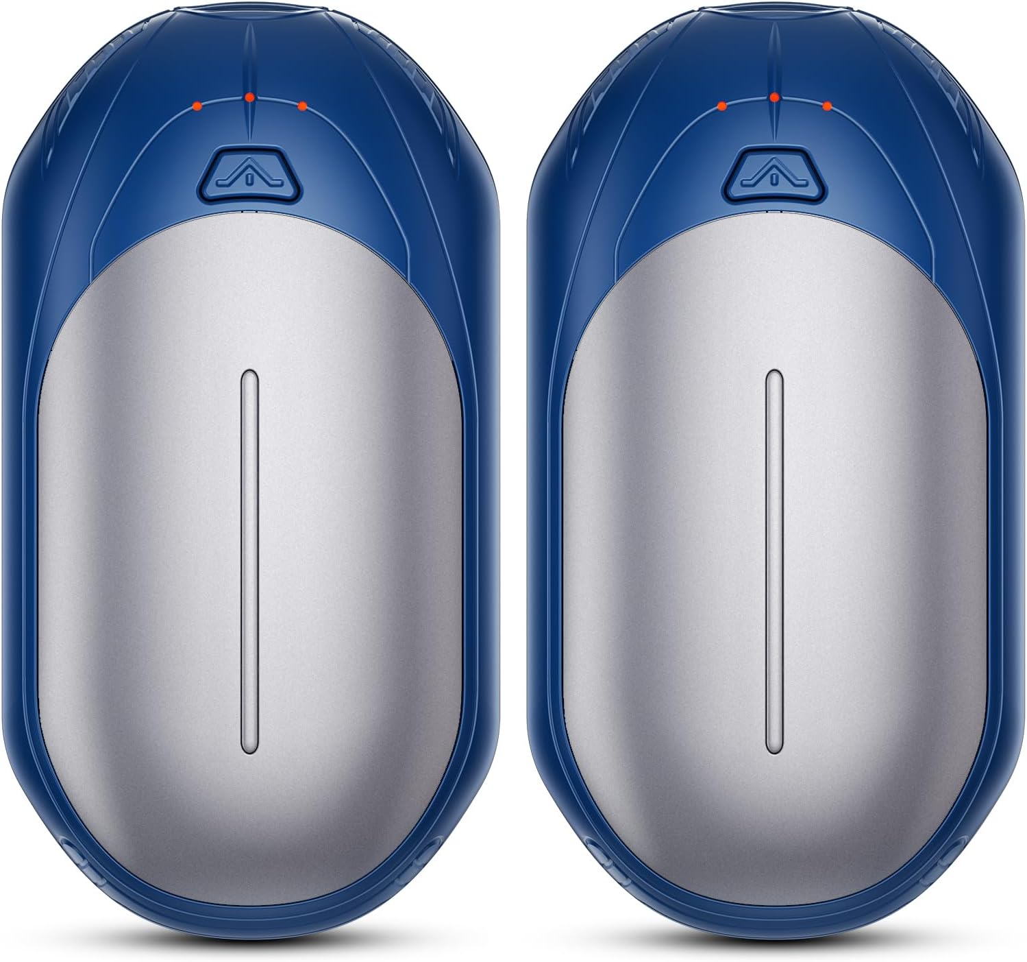 • AI Hand Warmers Rechargeable 2 Pack, AI Smart Chips 6000mAh Electric Hand Warmers, 20Hrs Long Safe Heat, Portable Pocket Heater, Gifts for Christmas, Outdoor, Golf, Hunting, Camping Accessories -Blue