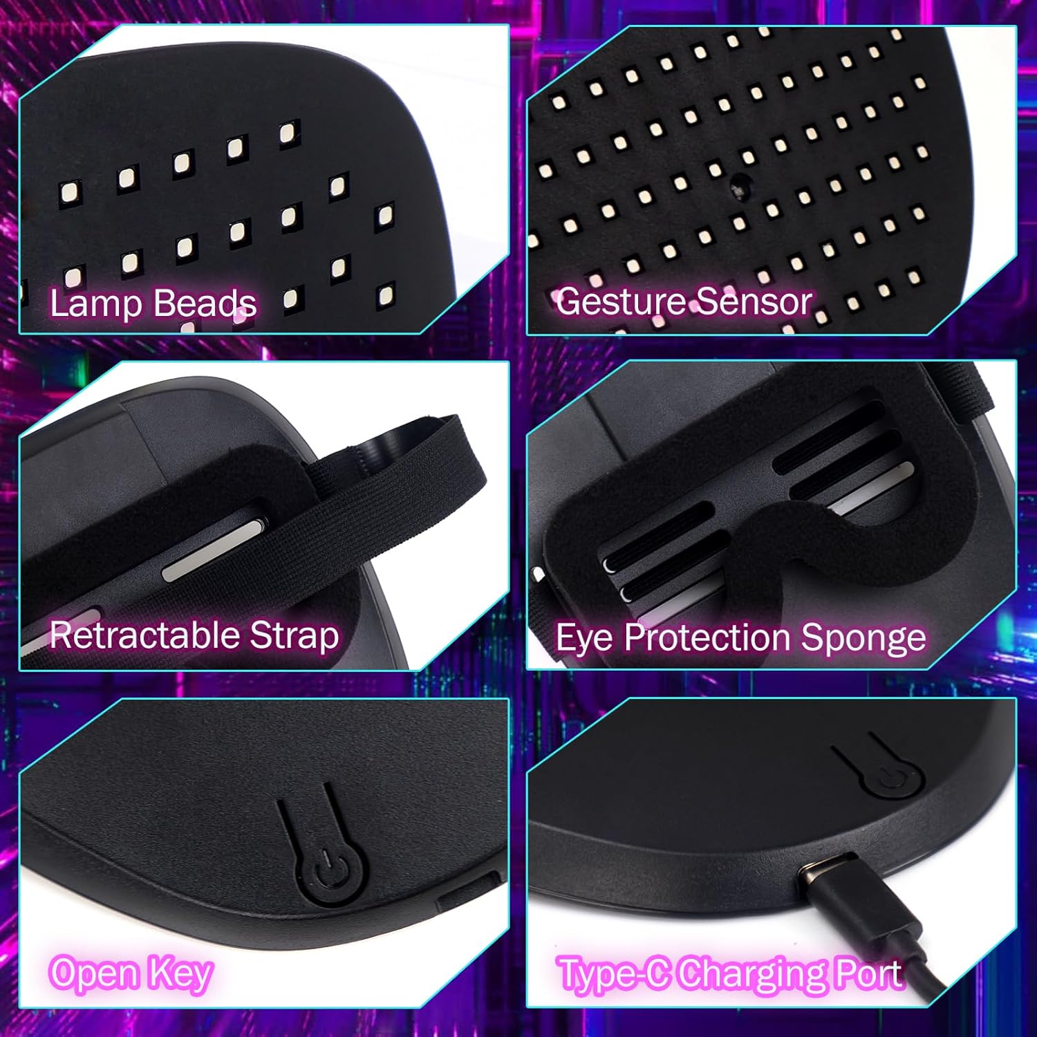 • 【Product Material】Crafted from durable plastic and soft sponge, this LED mask is built for all-day wear. Its ergonomic design, plush inner lining, and pre-cut eye holes guarantee a comfortable fit, even when worn for hours on end.