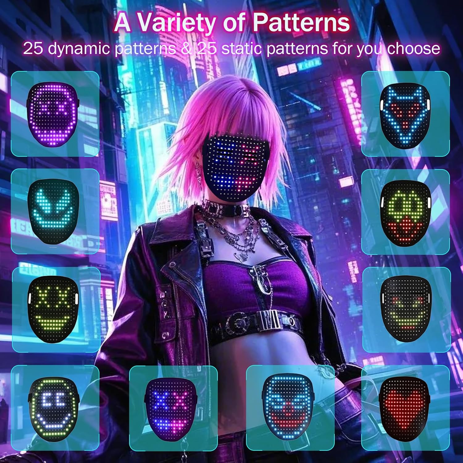 • 【Pattern Options】This LED mask comes with 25 dynamic display modes and 25 static images. As a full-face LED mask, it's an amazing piece for costumes and cosplay, sure to grab everyone's attention wherever you go.
