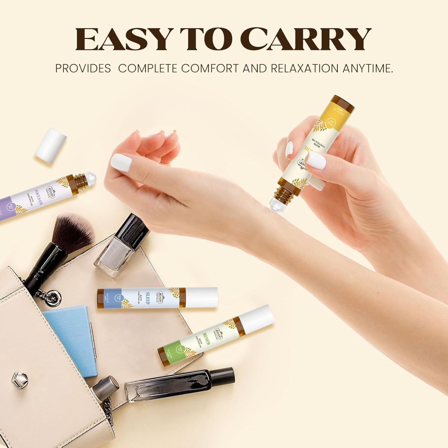 Essential Oils Roll On Set(Calm, Relax, Breathe, Focus on, Sleep, Renew), Natural Aromatherapy Oil Blend Kit with Roller Ball for Massage, Body Skin Care, Home, Relaxation Gift for Women & Men