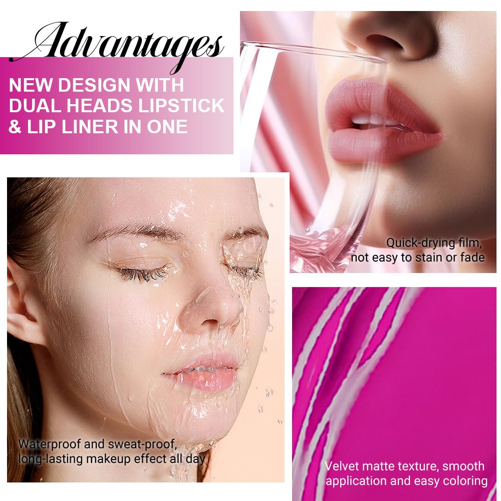 • 【Dual Ended 2-in-1 Lip Perfection 】The set includes precision lip liner and richly pigmented liquid lipstick that work together for a sharp, defined look. Line, fill, and slay with one power duo—ideal for bold beauty lovers.