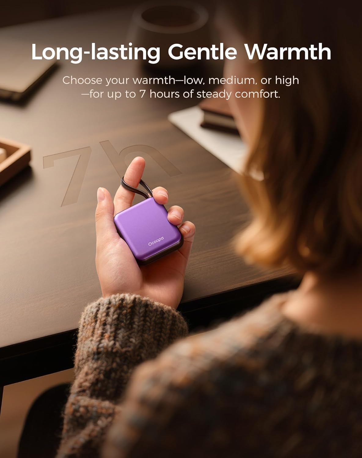 • 3.5-7 Hours All-Day Long-Lasting Heat — Keeps hands cozy from your morning walk to evening dinner without mid-day charging.