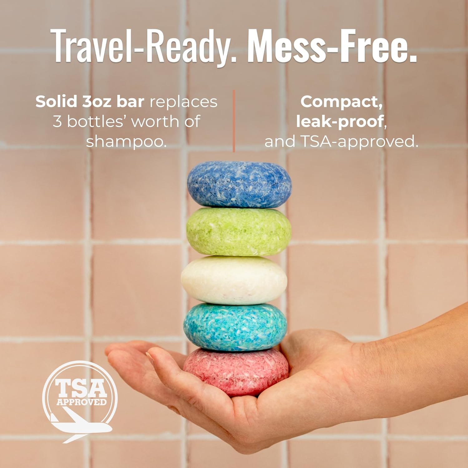 • TRAVEL-FRIENDLY, MESS-FREE: Compact solid shampoo bar fits easily into any toiletry bag; TSA approved and leak-proof for hassle-free travel and gym use