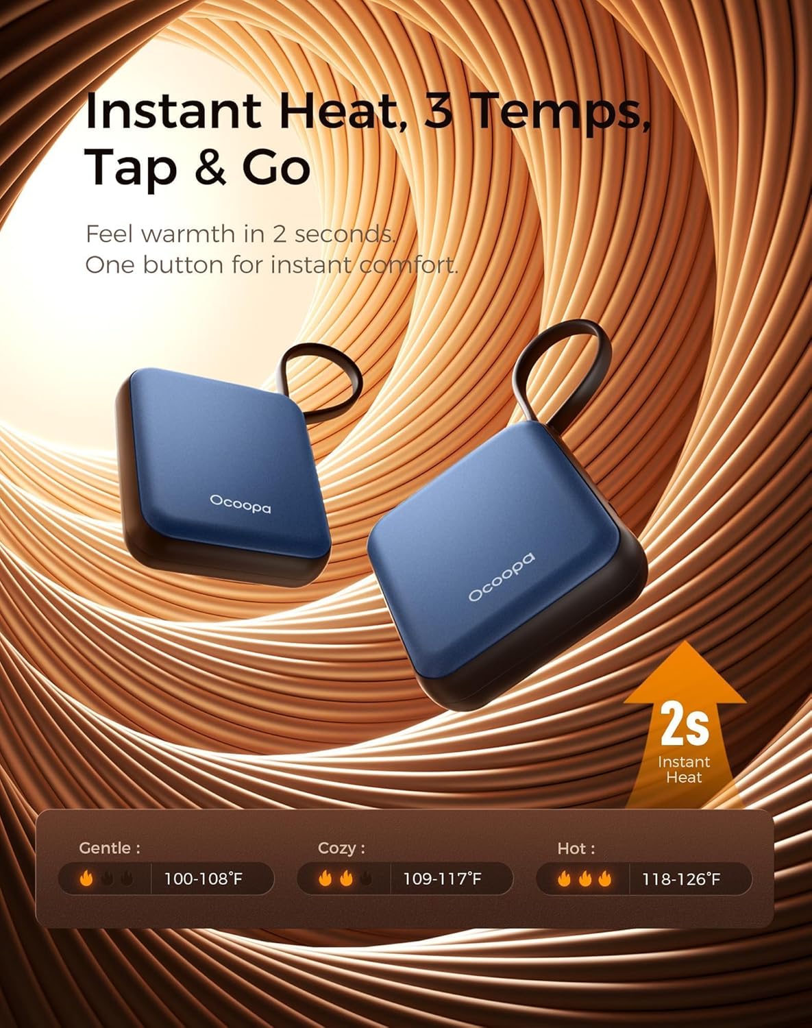 • Instant Heat in 2 Seconds: activate and warm up immediately. 3 adjustable temperatures to match your preferences — from gentle warmth to deep heat.