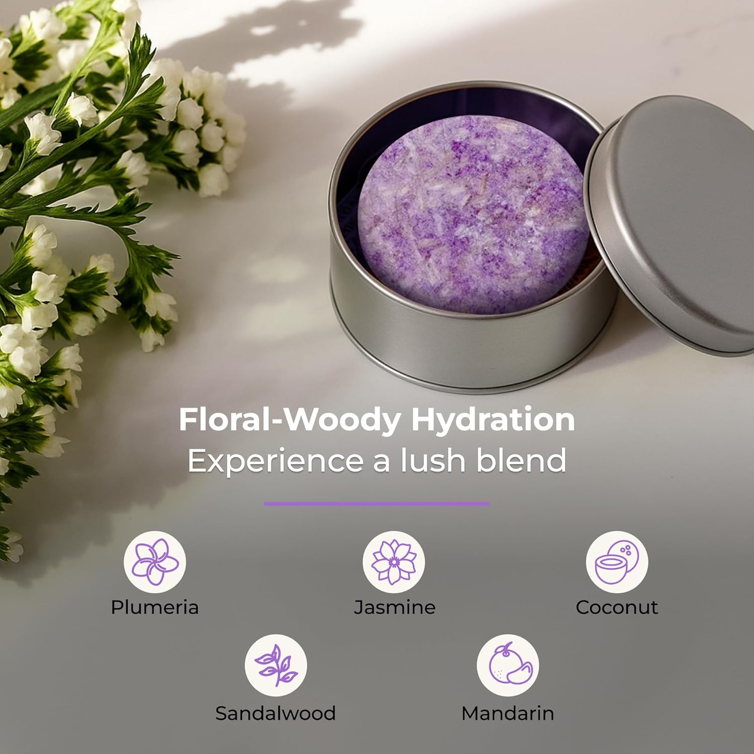 • FLORAL AND WOODSY AROMA: This vegan shampoo bar blends plumeria flower, sweet jasmine, sandalwood, coconut, and mandarin; leaves hair lightly scented with a soft, refreshing finish