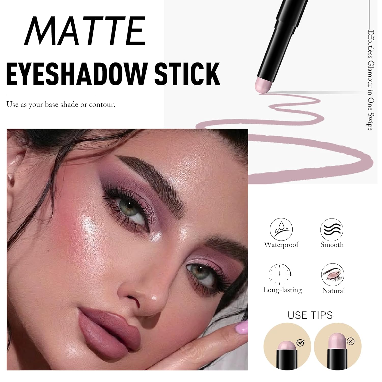 Eyeshadow Stick Mauve, Matte Cream Eye Shadow Stick Waterproof Neutral Nude Eyeliner Brightener Pencil Crayon Long-Lasting Eye Highlighter Makeup for Older Women Easy to Use High Pigmented
