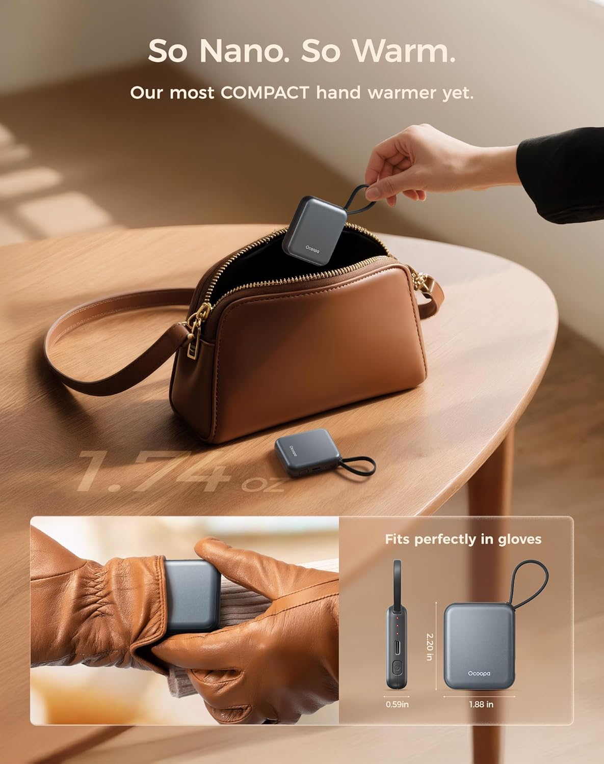 • Ultra-Nano Size – Designed for Her Hands: This ultra-slim rechargeable hand warmer smaller than your palm, lighter than a lipstick. UT5 Nano fits perfectly in gloves, pockets—even wallets. Tailored for women who love warmth without the bulk.