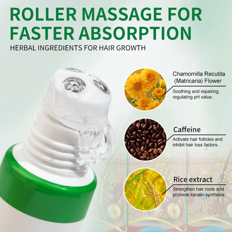 • 【Easy to Apply】The triple roller applicator design allows for precise application of the hair growth serum while gently massaging the scalp for maximum absorption. Use twice daily to better nourish the hair roots, promote blood circulation, and achieve better deep penetration. The scalp serum is convenient to carry, ready to use anytime.