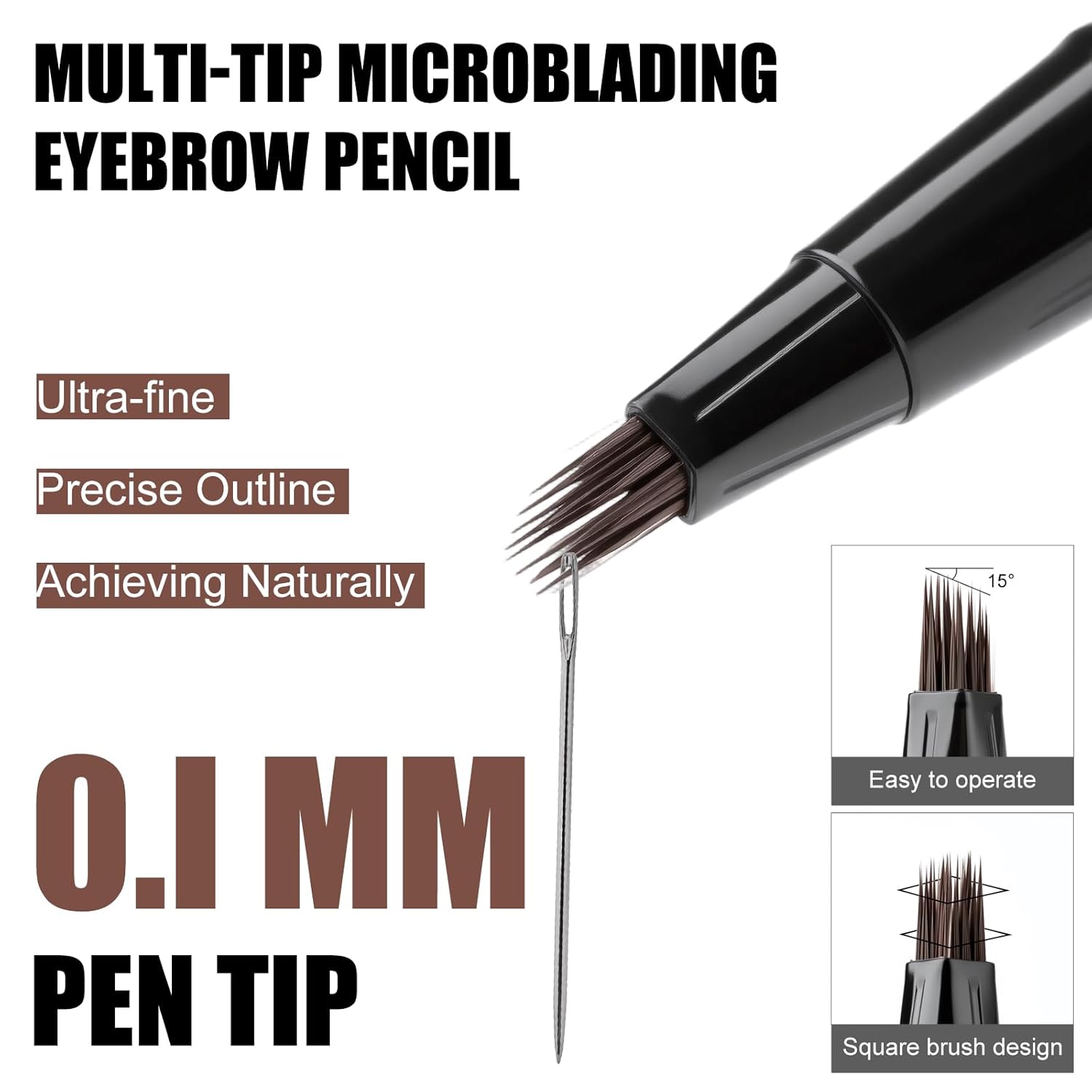 Microblading Eyebrow Pen Hair Stroke Brush, Waterproof Liquid Eyebrow Pencil for Women, Shapes & Fills Hair-Like Looking Brows, 24hrs Long-Lasting, Easy to Use, Multiple Uses, Gifts for Her,Dark Brown