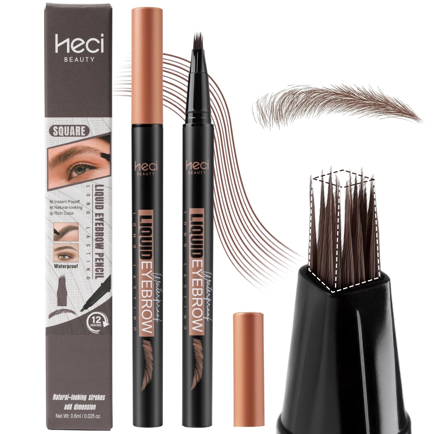 • 【NATURAL MAKEUP EFFECT】HECI BEAUTY Liquid Brow Pencil - Its unique shape makes it easy to fill, shape, and add volume. Each stroke mimics real brow hairs. The unique brush head features flat, square-angled, tightly packed bristles for precise, lightweight application, mimicking the look of real brows. Ideal for beginners and professionals alike, this pencil evenly blends liquid pigment and creates beautifully defined brows in seconds.