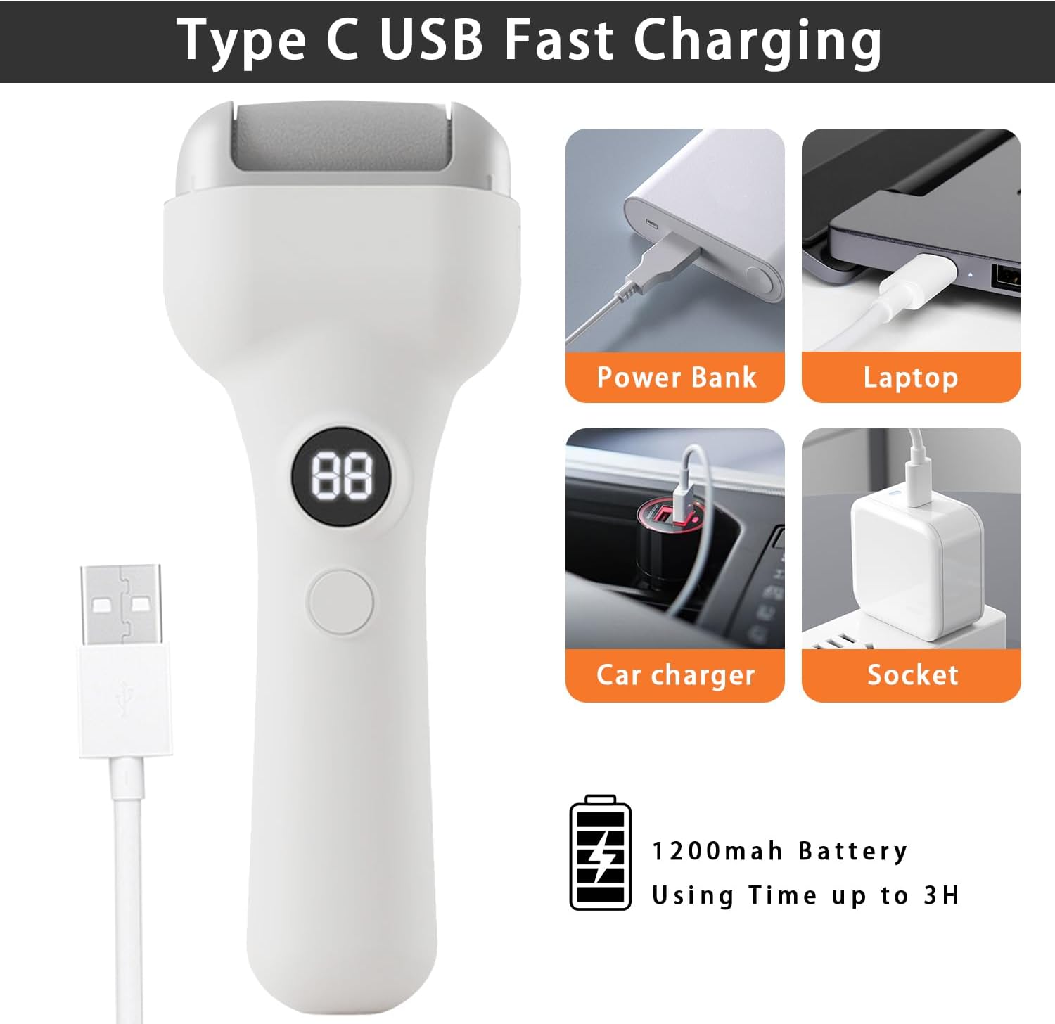• Long-Lasting Battery Power: This rechargeable electric callus remover for feet has a powerful 1200mAh battery, delivering cordless convenience for all-day. Ideal as a battery operated foot scraper, no charging worries—perfect for home or travel.