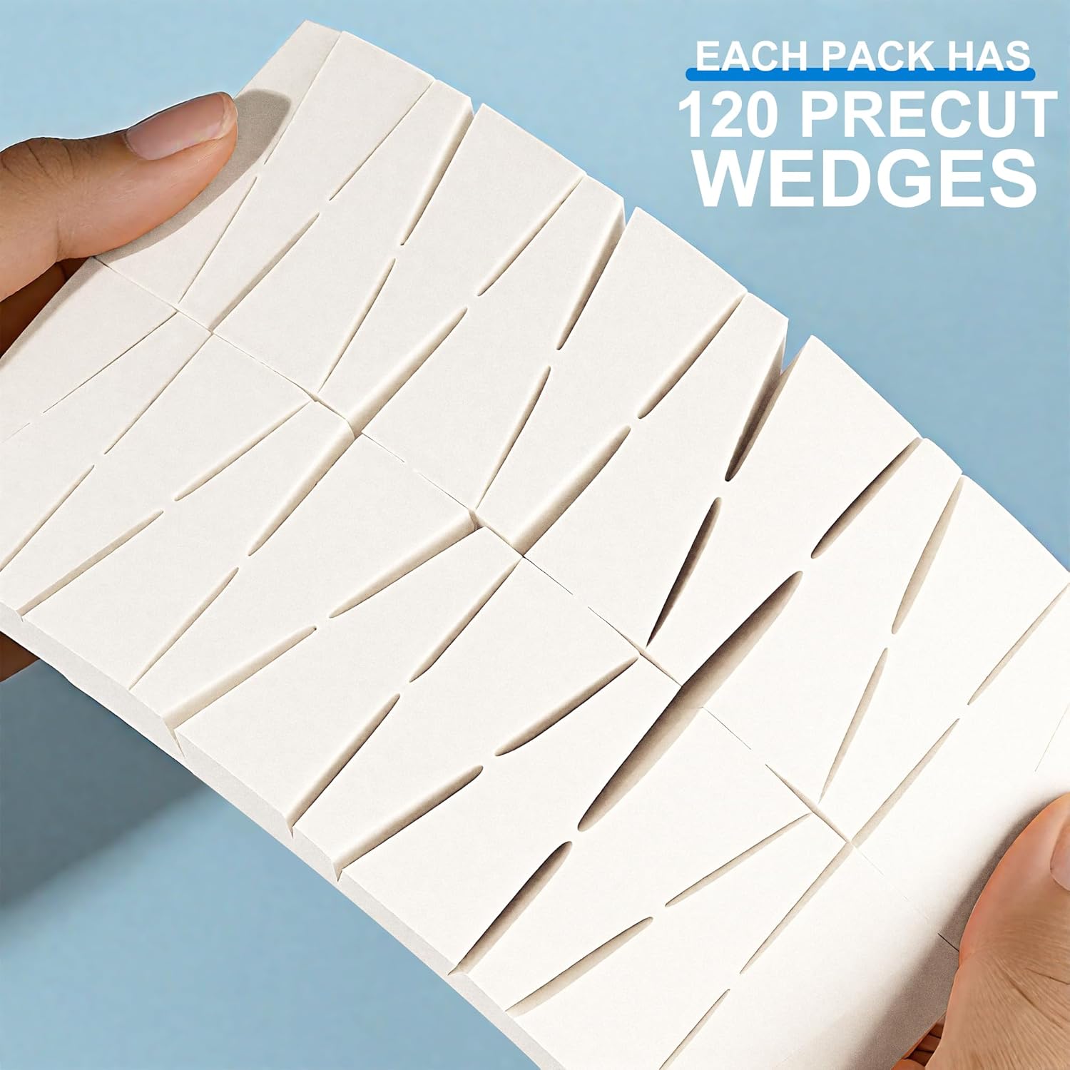 • QUANTITY & VALUE: Bulk pack of 120 disposable triangle-shaped cosmetic wedge sponges for professional or personal use