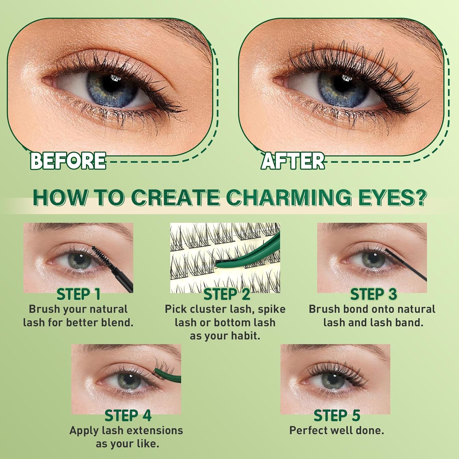 • Easy to Wear &Remove:Very easy to apply the cluster lashes with the brush included in the kit,the lash bond and seal extend the wear up to 3-4 days and the remover is very easy to remove the lash cluster and will not hurt the eyes