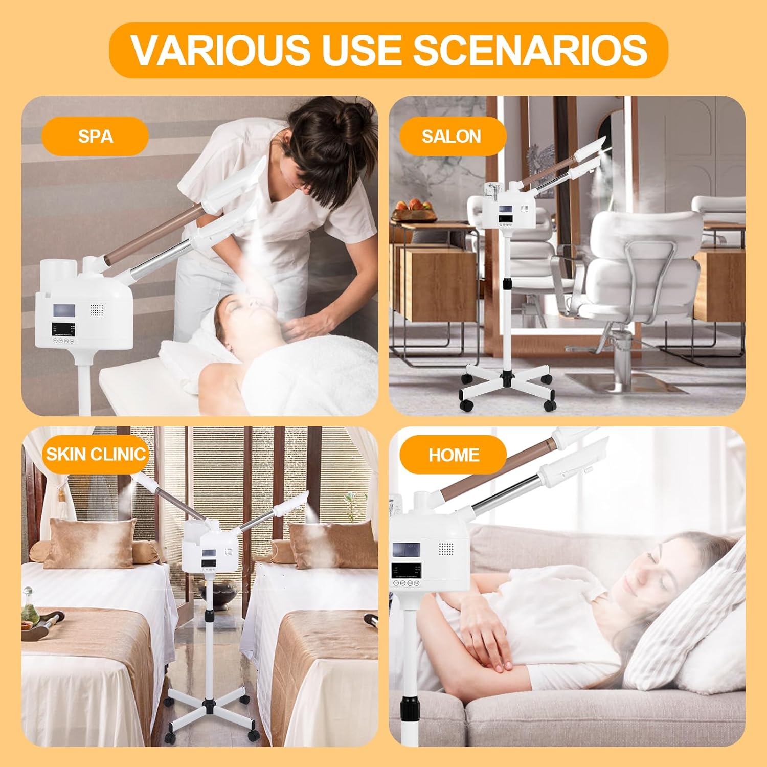 • 【Wide Use】Hot & cold mist 2-in-1 facial steamer designed for esthetician facial steamer and home users, perfect for beauty salon, spa, or other professional treatment places. Or you can use it at home, this facial steamer combines quality and simplicity, providing you a professional-level treatments at home.