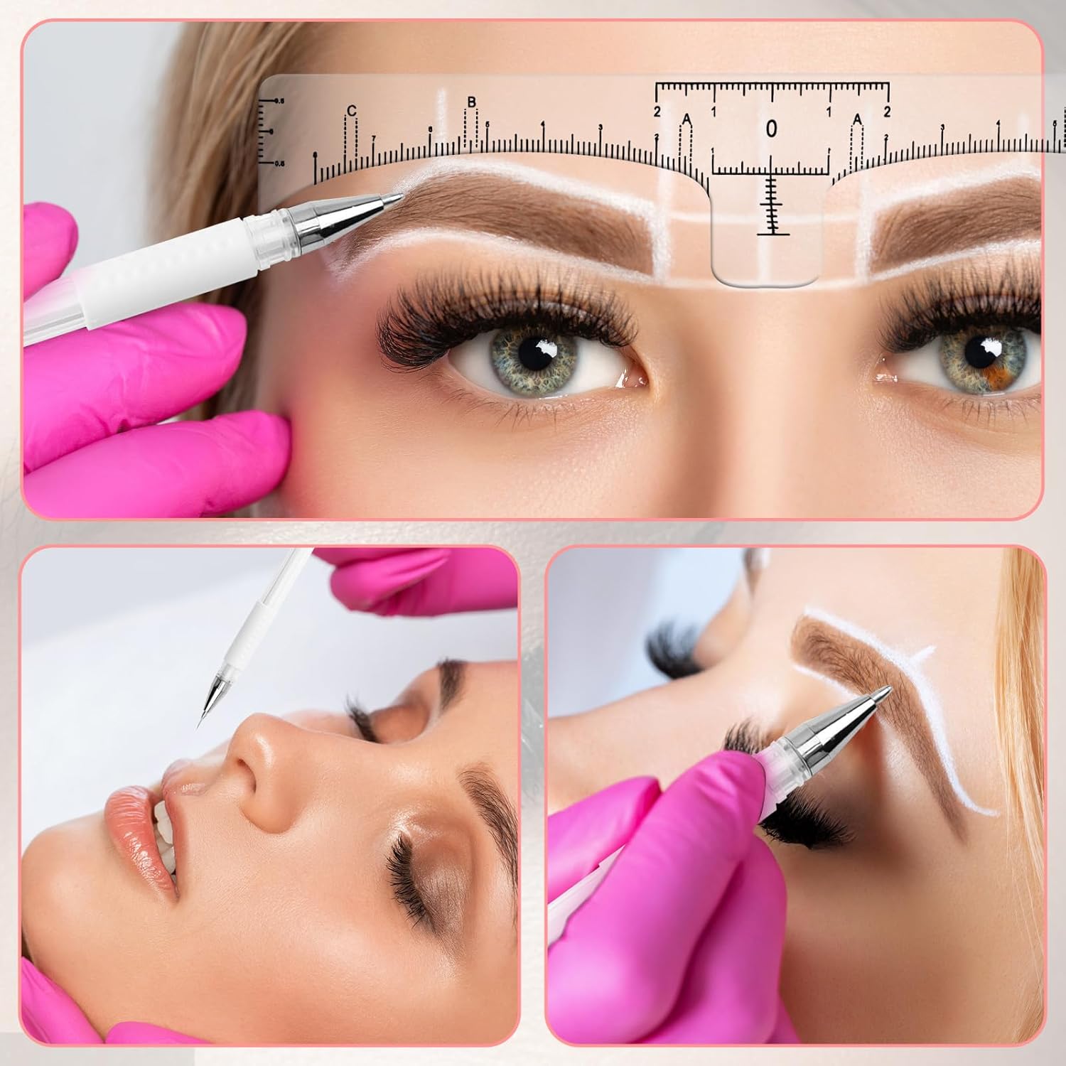 • Precision Brow Mapping Tools - The dual-tip marker pens allow for both fine hair strokes and bold mapping lines, while the disposable rulers ensure symmetrical eyebrow design every time.