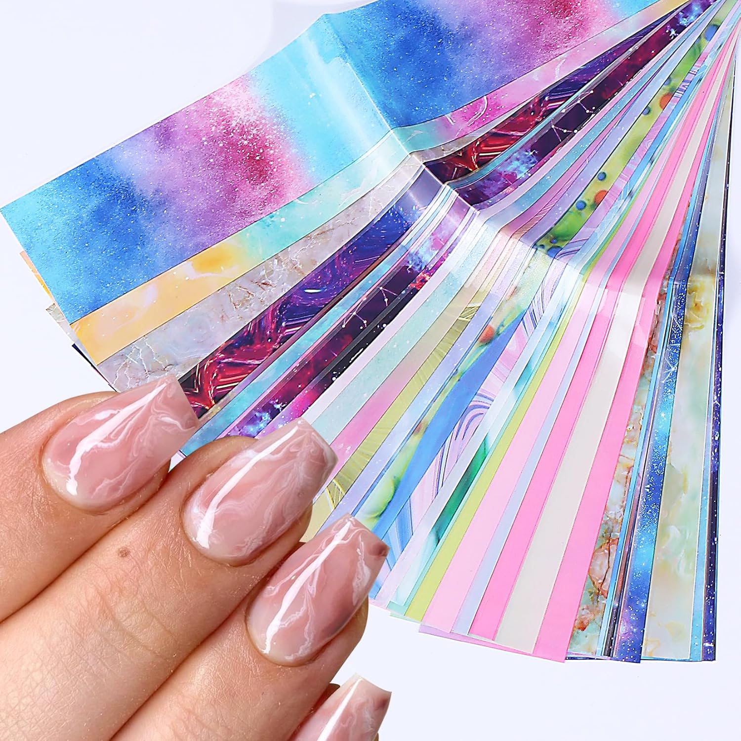 • Prefect Nail Foil Set: This nail foils transfer nail art sticker features 50 starry marble foil stickers in non-repeating designs, measures approximately 1.5 x 7.8 inches/4 x 20 cm, 50 pieces in a pouch, one sticker makes at least 10 nails, this nail sticker set offers endless possibilities for creating stylish, personalised nail art.