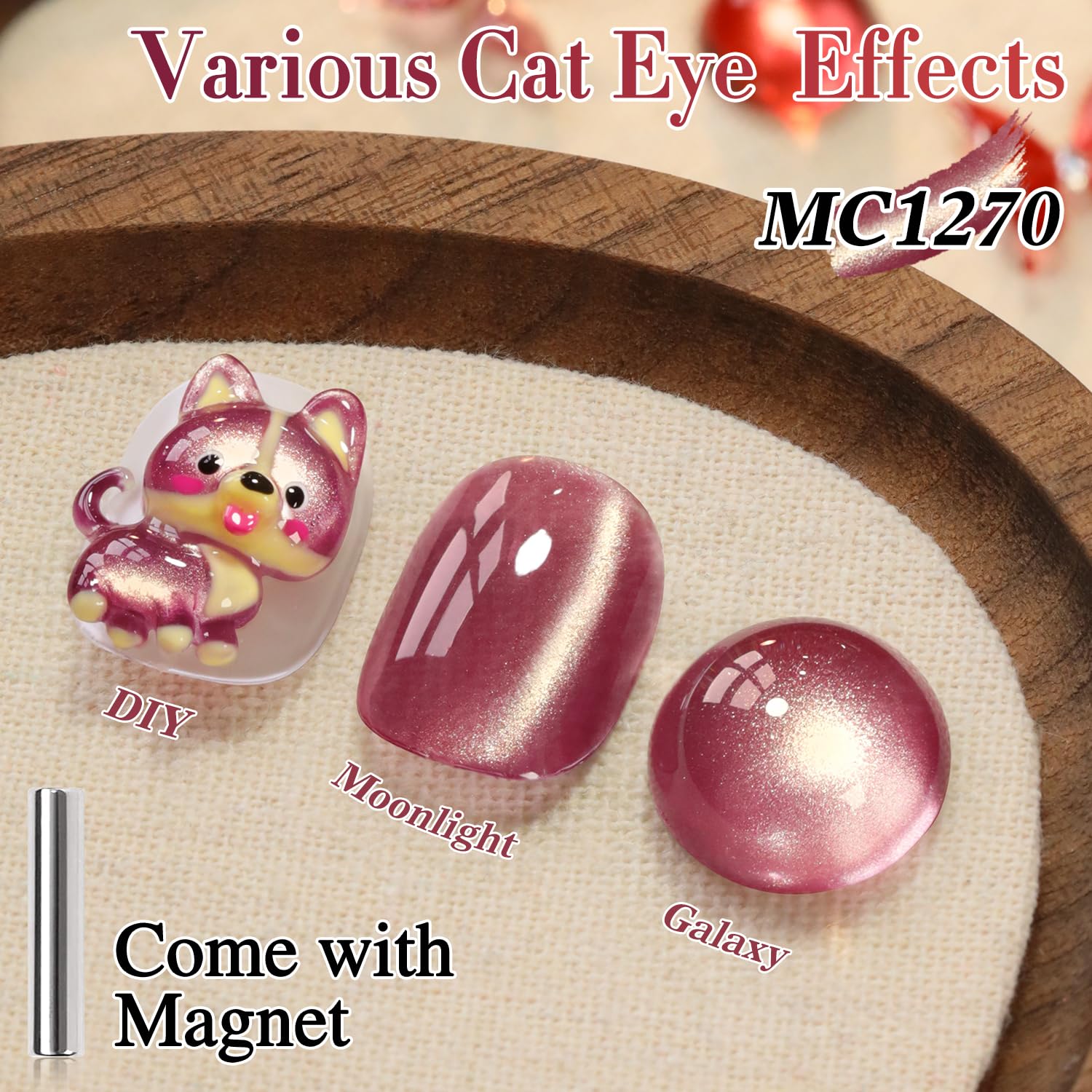 • Same Color Same Bollte Cat Eye Gel Nail Polish : Double Rhythm cat eye gel nail polish kit includes 1 color 15ml / 0.5 fl.oz gel nail polish. The cat eye gel can be combined with different bacse colors arbitrarily, you can get different colors nail art.You can use different base color to creat different sytles.