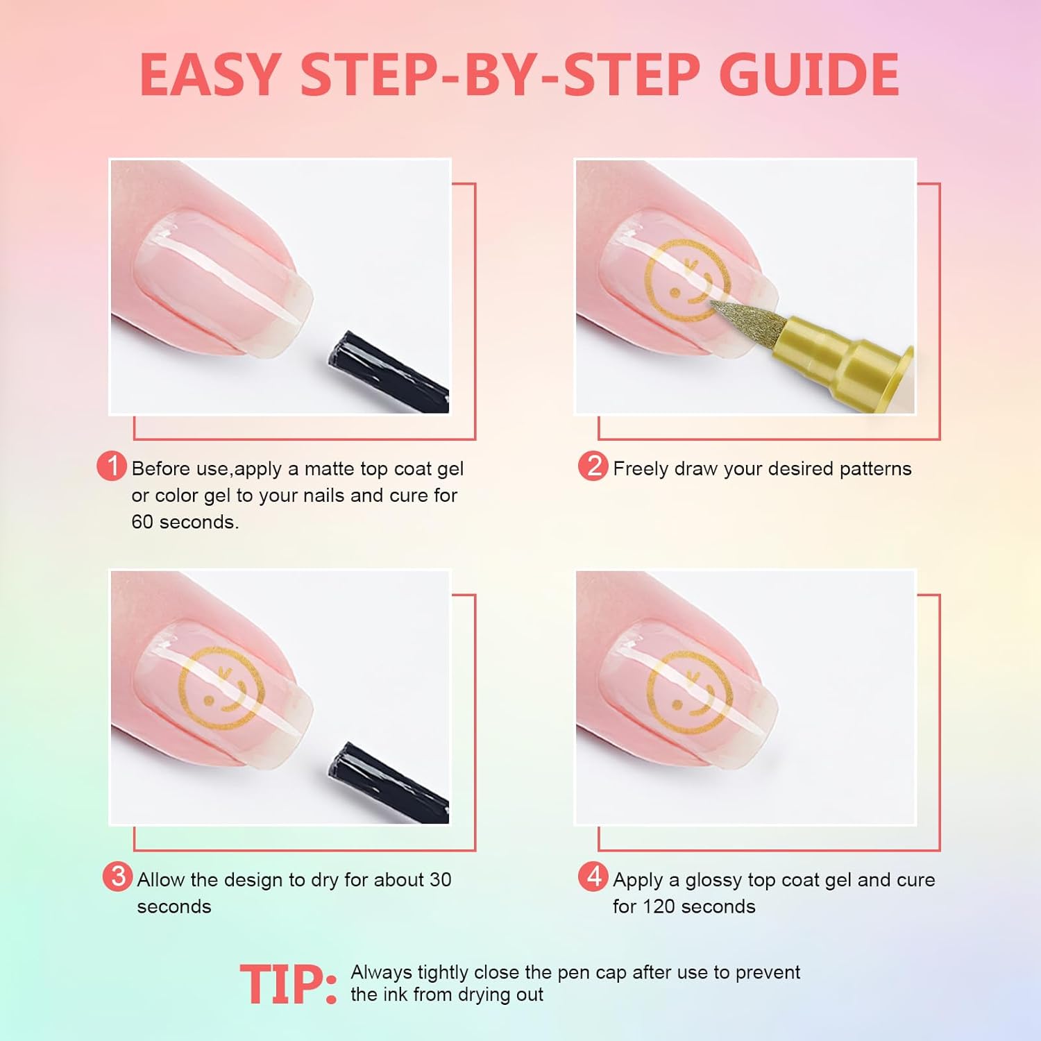 • 【Easy to Use, Beginner-Friendly】No professional skills required, suitable for enthusiasts, pros, and beginners. Simply shake well and press the tip vertically to release ink; the smooth flow ensures easy creation of unique nail designs. Everyone can enjoy DIY fun and get great results quickly
